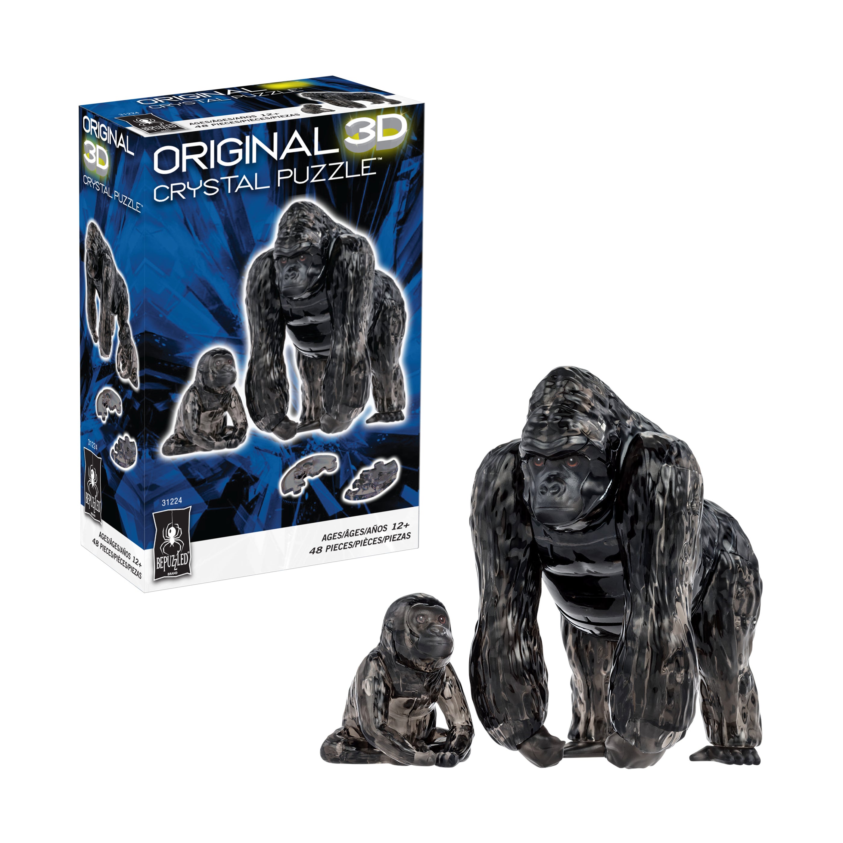 3D Crystal Puzzle – Gorilla and Baby (Black): 48 Pcs