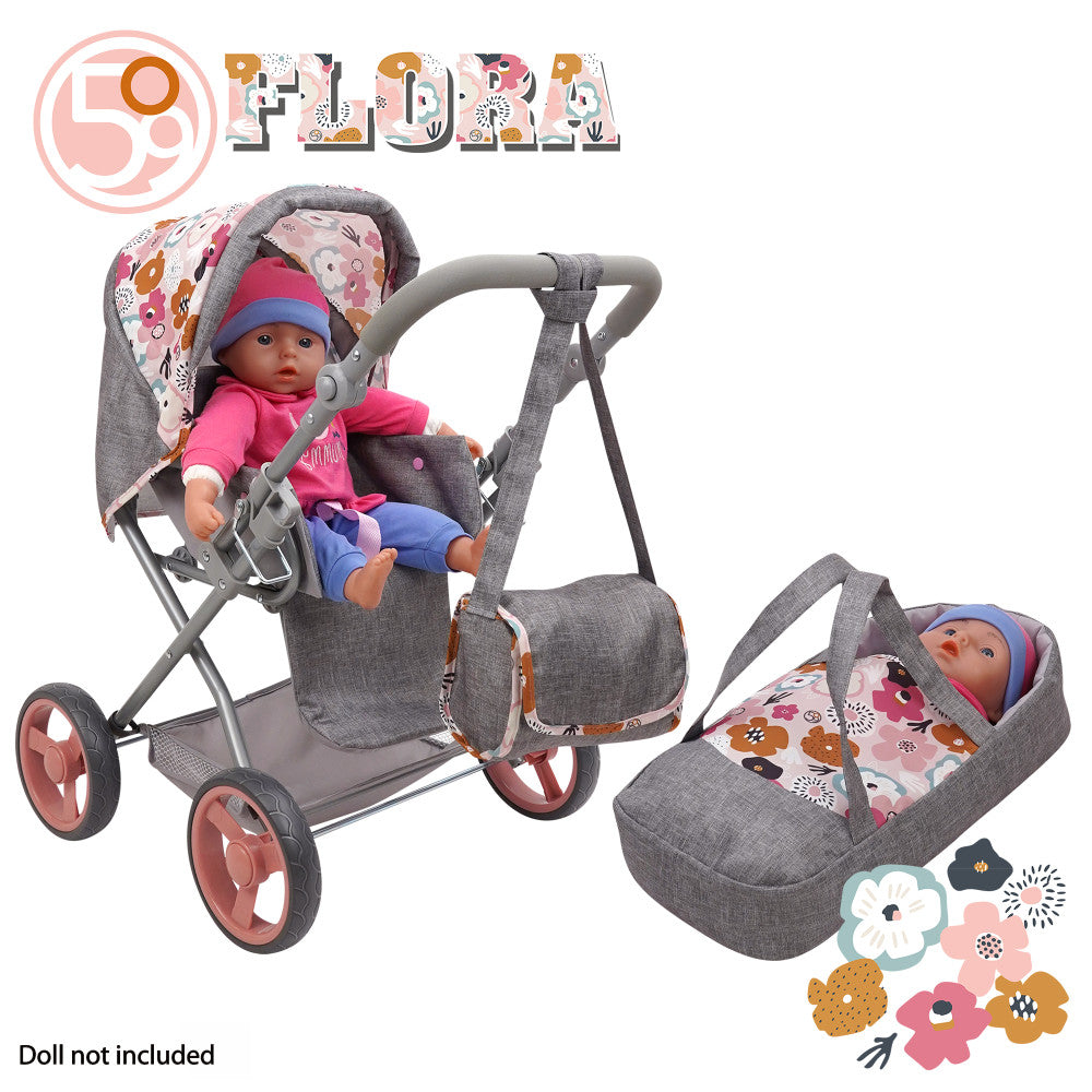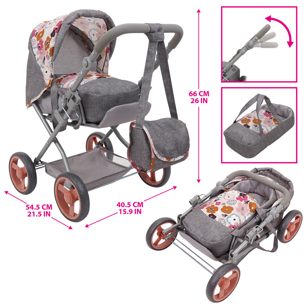 509 Crew Kelly Deluxe Doll Pram with Melange Flora Design and Matching Bag