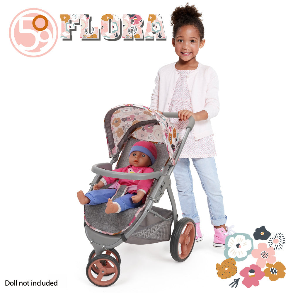 509 Crew Melange Flora Mabelle 3-Wheel Doll Jogger Stroller, Ages 3+