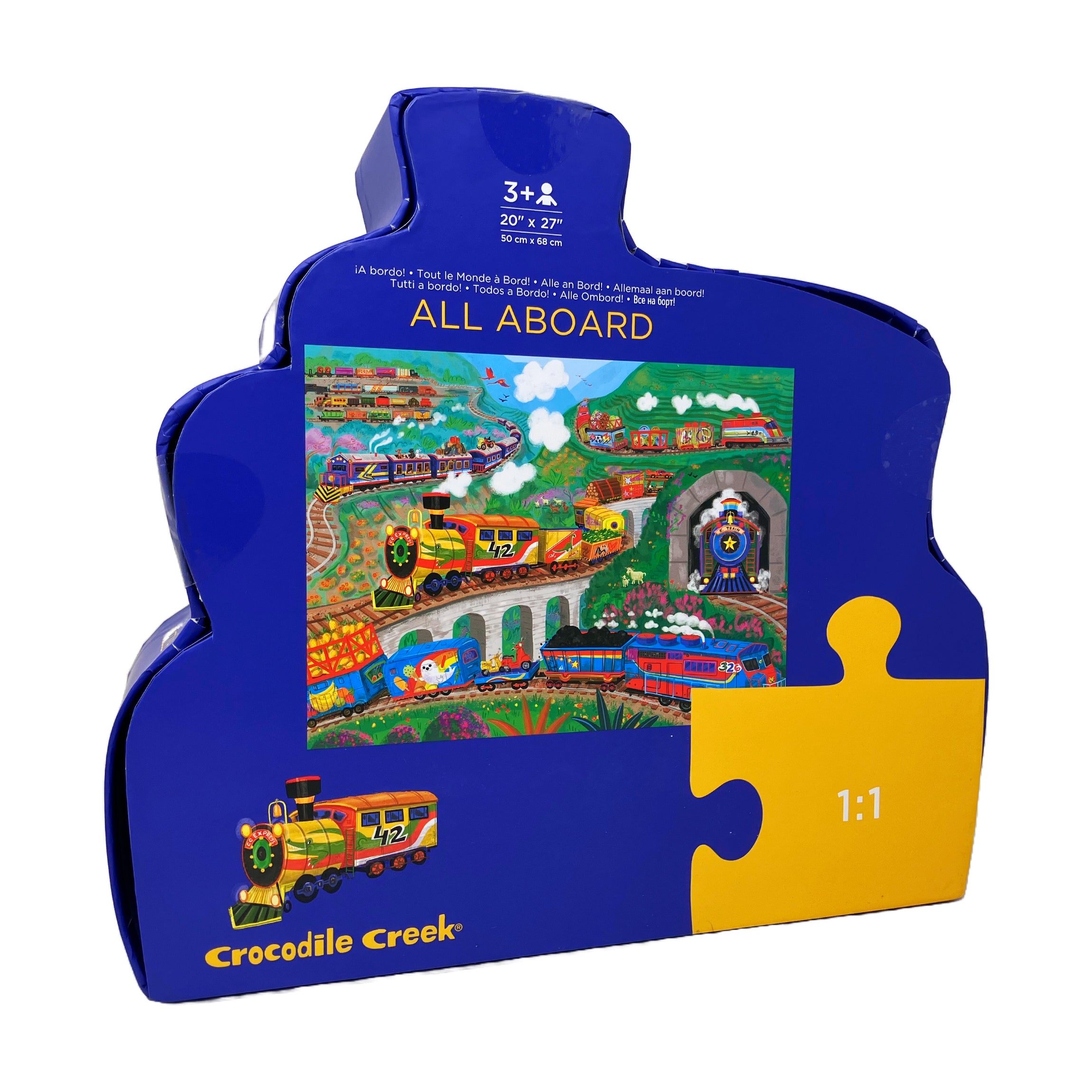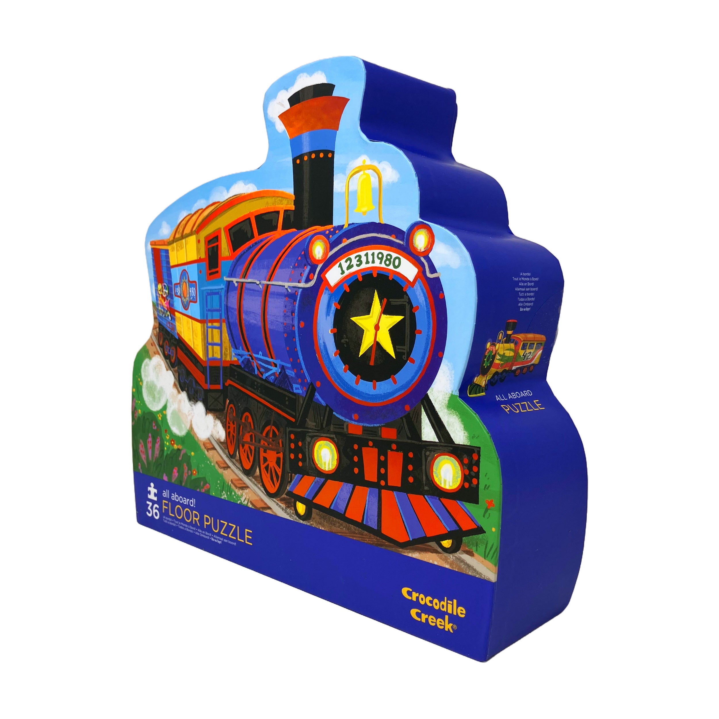 The All Aboard! Floor Puzzle features:
