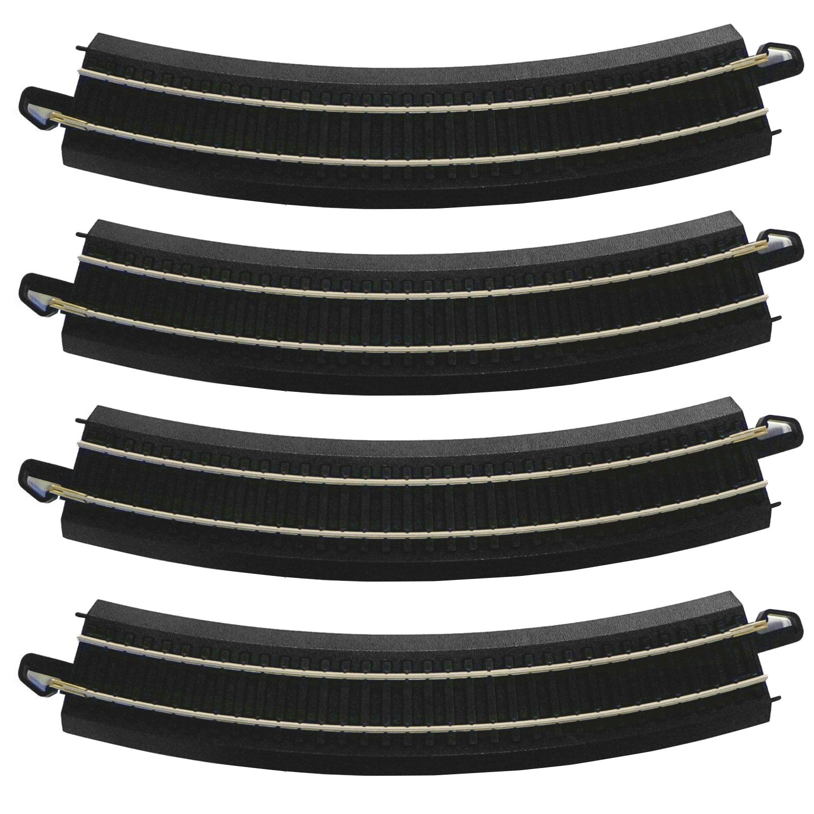 – Includes 21 pieces of 18″ radius curved track and a 30 degree crossing track