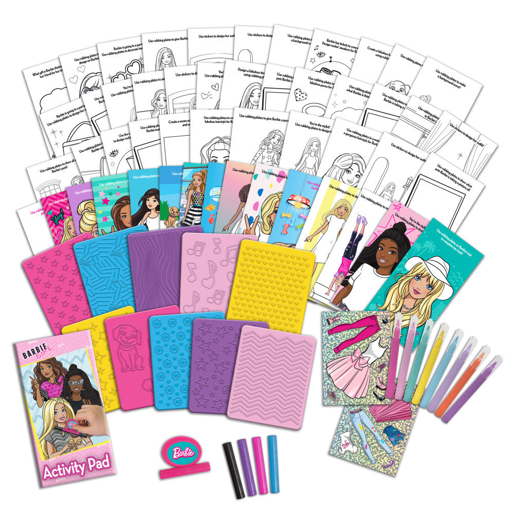 Sparkle and dazzle with the Tara Toy: Barbie Rubbing Plates Fashion Portfolio-Create & Design Fashion Outfits! Let your little designer’s creativity soar as they mix and match to craft unique fashion looks for Barbie. With easy-to-use rubbing plates and a splash of colorful markers, every outfit creation is a runway-ready masterpiece. Perfect for budding fashionistas who love to explore their style sense!