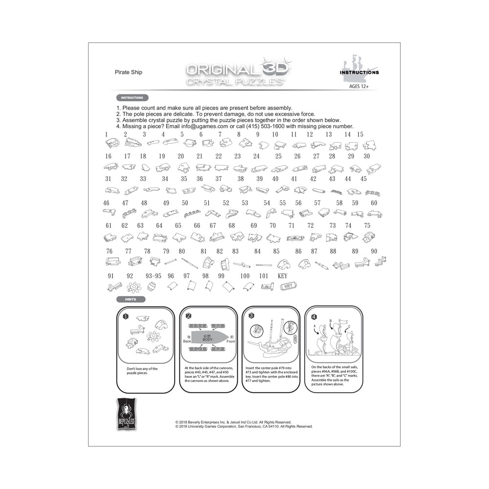 The BePuzzled 3D Crystal Pirate Ship Puzzle features: