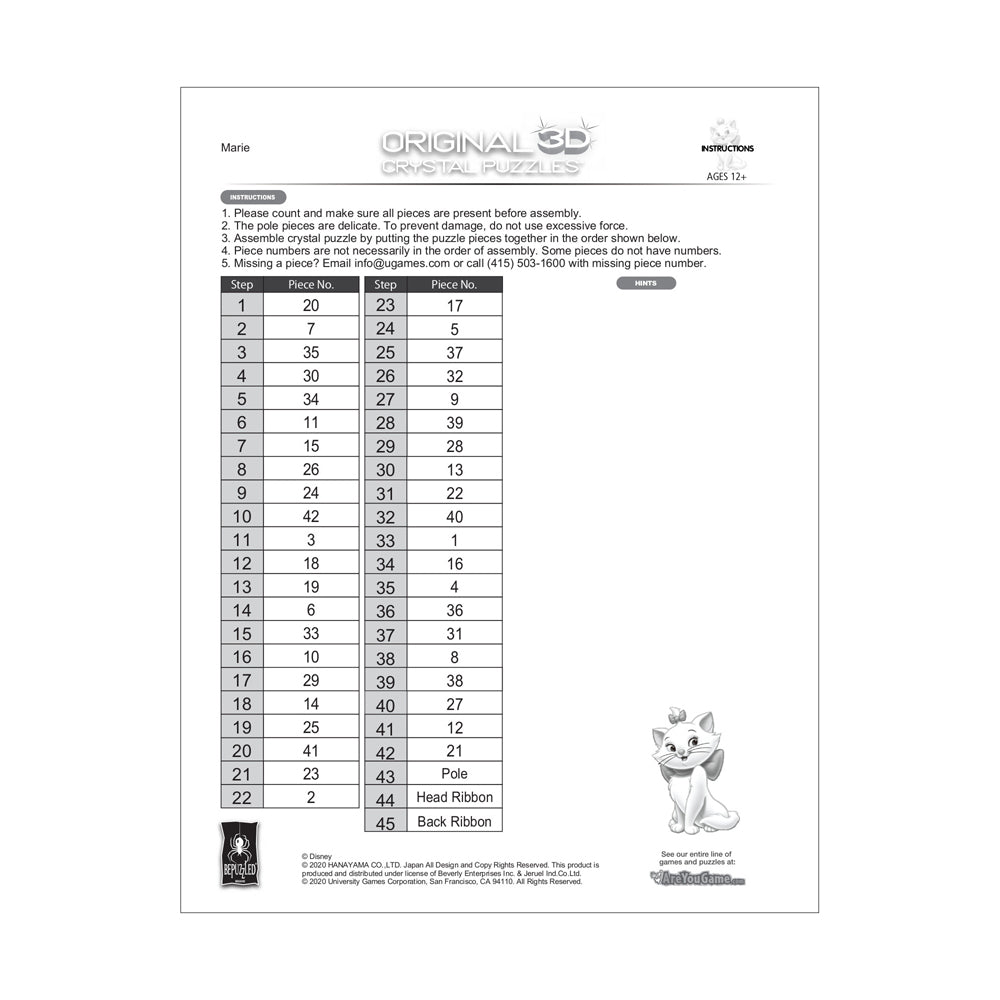 BePuzzled Disney Marie 3D Crystal Puzzle – 45 Pieces