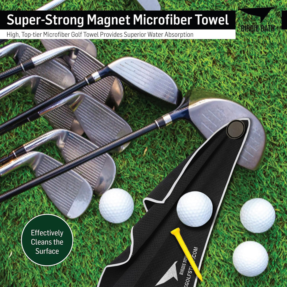 Birdie Golf: Birdie Bath – Black Magnetic Golf Towel with Premium Microfiber