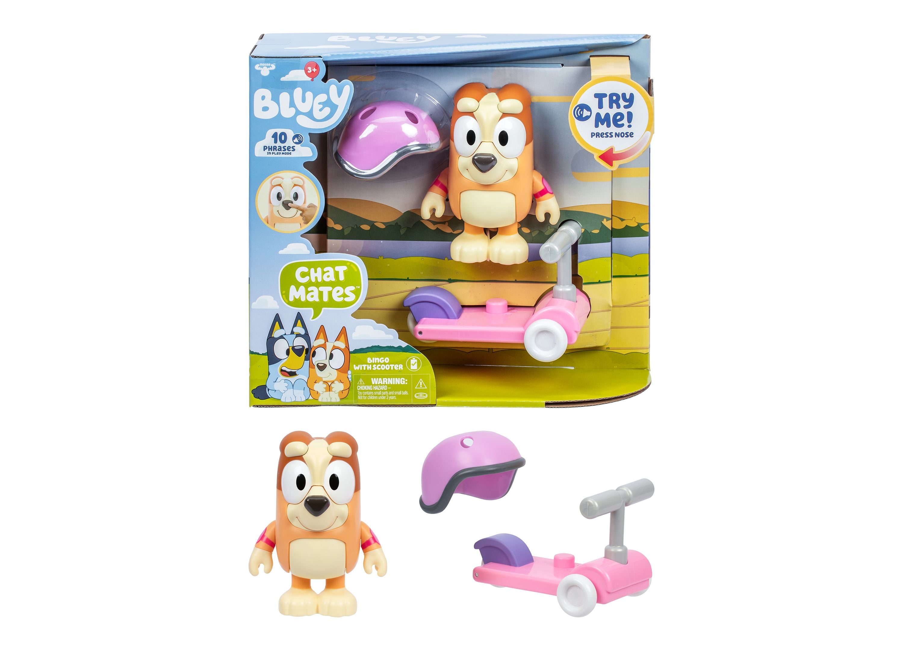 The Bluey S13 Chat Mates Bingo Figure Scooter features: