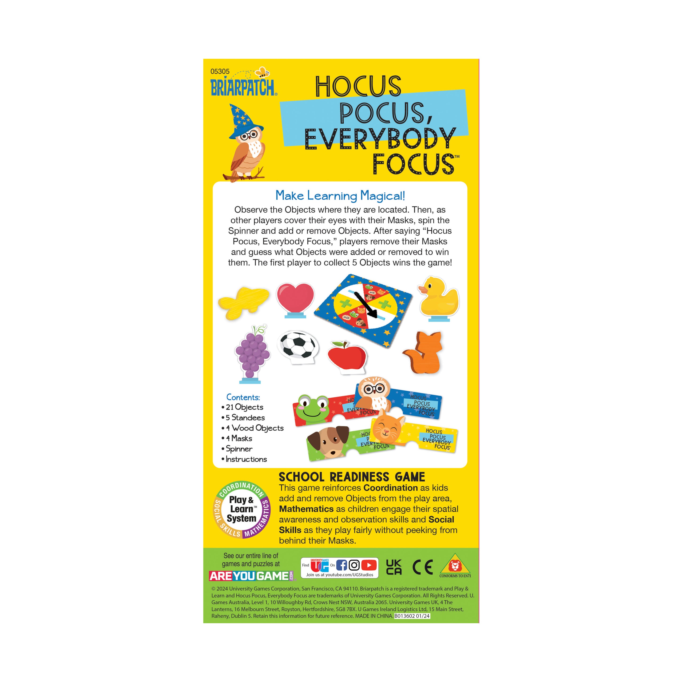 Wave your wand for whimsy with ‘Hocus Pocus, Everybody Focus’, the spellbinding game from Briarpatch that transforms learning into a magical adventure! Designed for preschoolers eager to flex their focus muscles, this delightful game brings giggles and challenges to little learners. Gather around, don your mystery masks, and prepare for a magical twist on memory and attention skills!