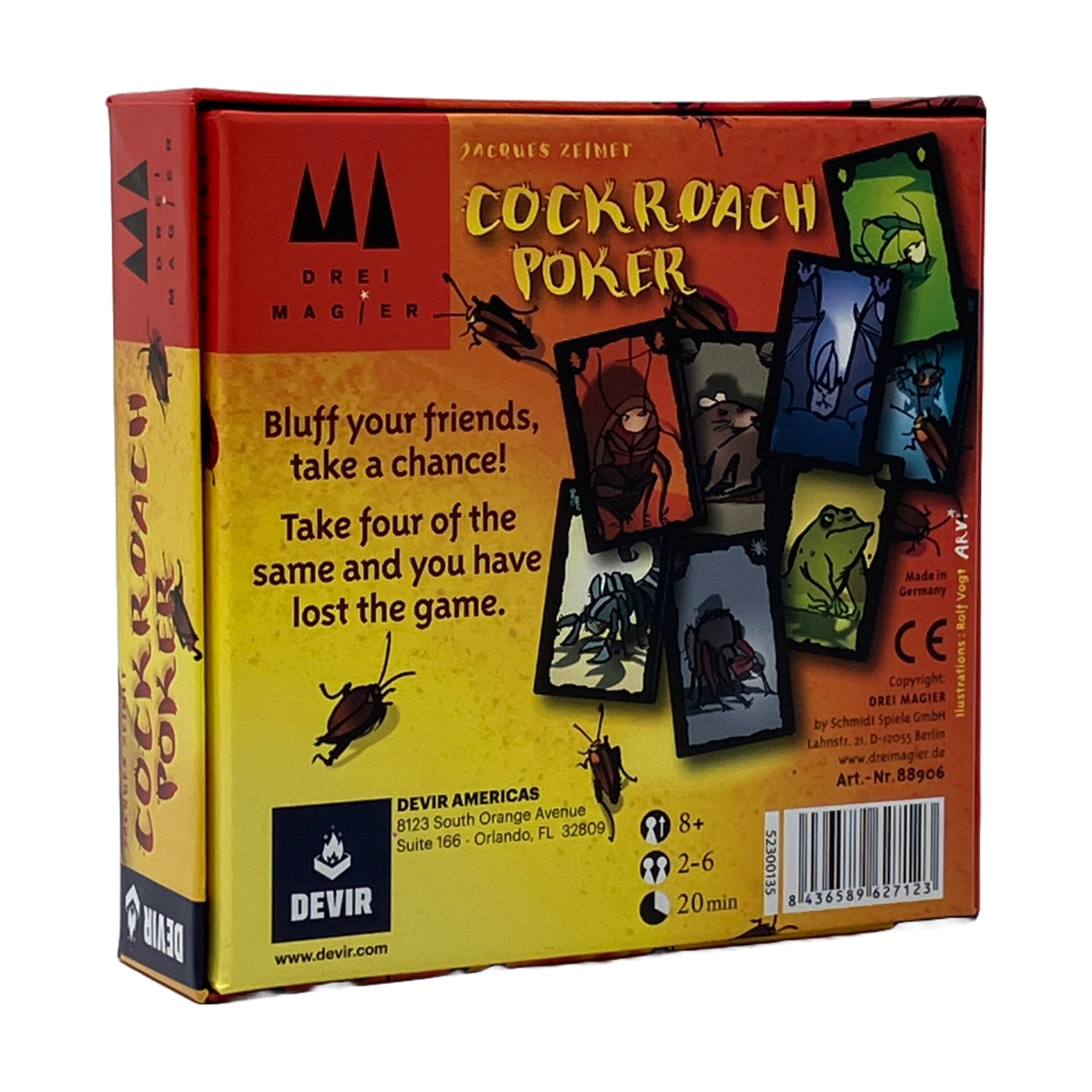 Squirm and giggle with delight as Cockroach Poker brings a sly twist to your family game nights! Deftly bluff your way to victory with captivating critters like cockroaches, rats, and stink bugs. Gather around, get your poker face ready, and prepare for hilarity and fun as you try to outsmart your opponents in this laugh-filled adventure!