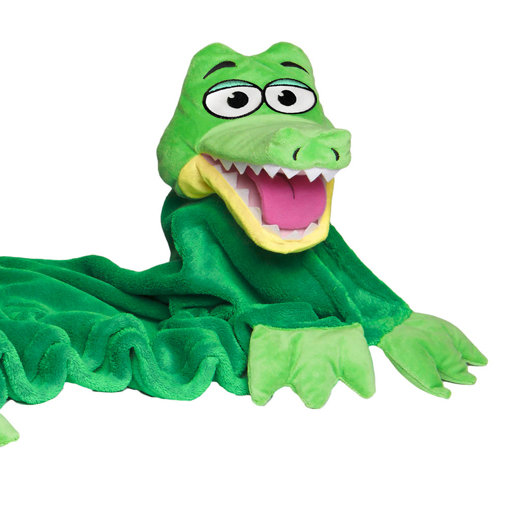 The Cuddleuppets Gator – Green, 2-In-1 Plush Puppet & Blanket features: