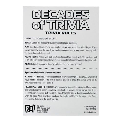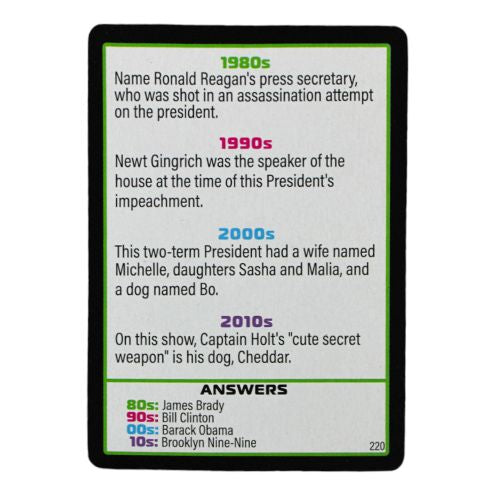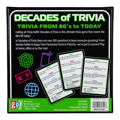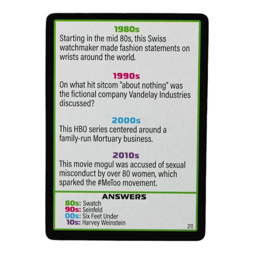 Step back in time with the Decades of Trivia Game, your ticket to a nostalgic journey through the vibrant 80s to the groundbreaking 2000s. This lively quiz game promises a rollercoaster of emotions as you challenge friends and family to recall pop culture, technological breakthroughs, and key historical events. It’s more than a game; it’s a lively journey through the decades that shaped us!