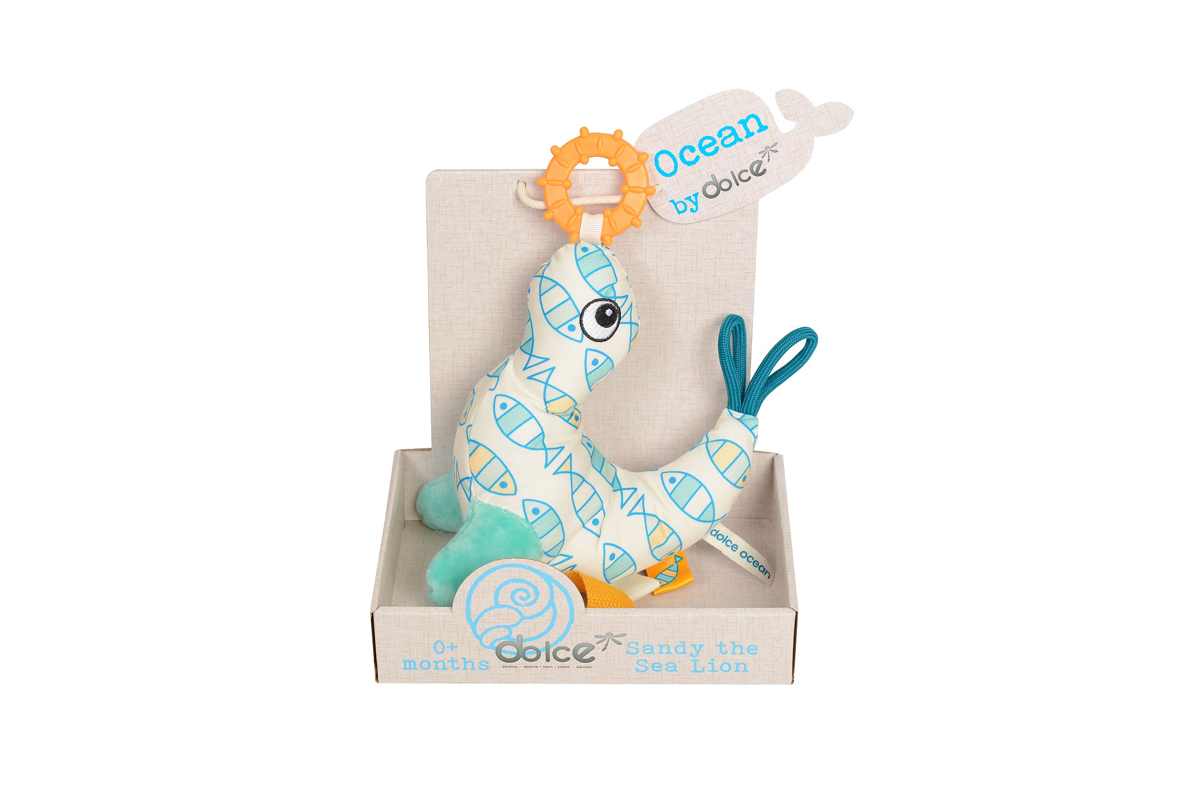 Squeeze, giggle, and play! Dolce Sammy the Seahorse is not just adorable but a perfect buddy for your little one during teething. With its vibrant blue hue and array of textures, it brings a splash of oceanic adventure right into the crib or stroller. This plush pal is equipped with features to stimulate both play and learning, making it an irresistible addition to your baby’s playtime routine.
