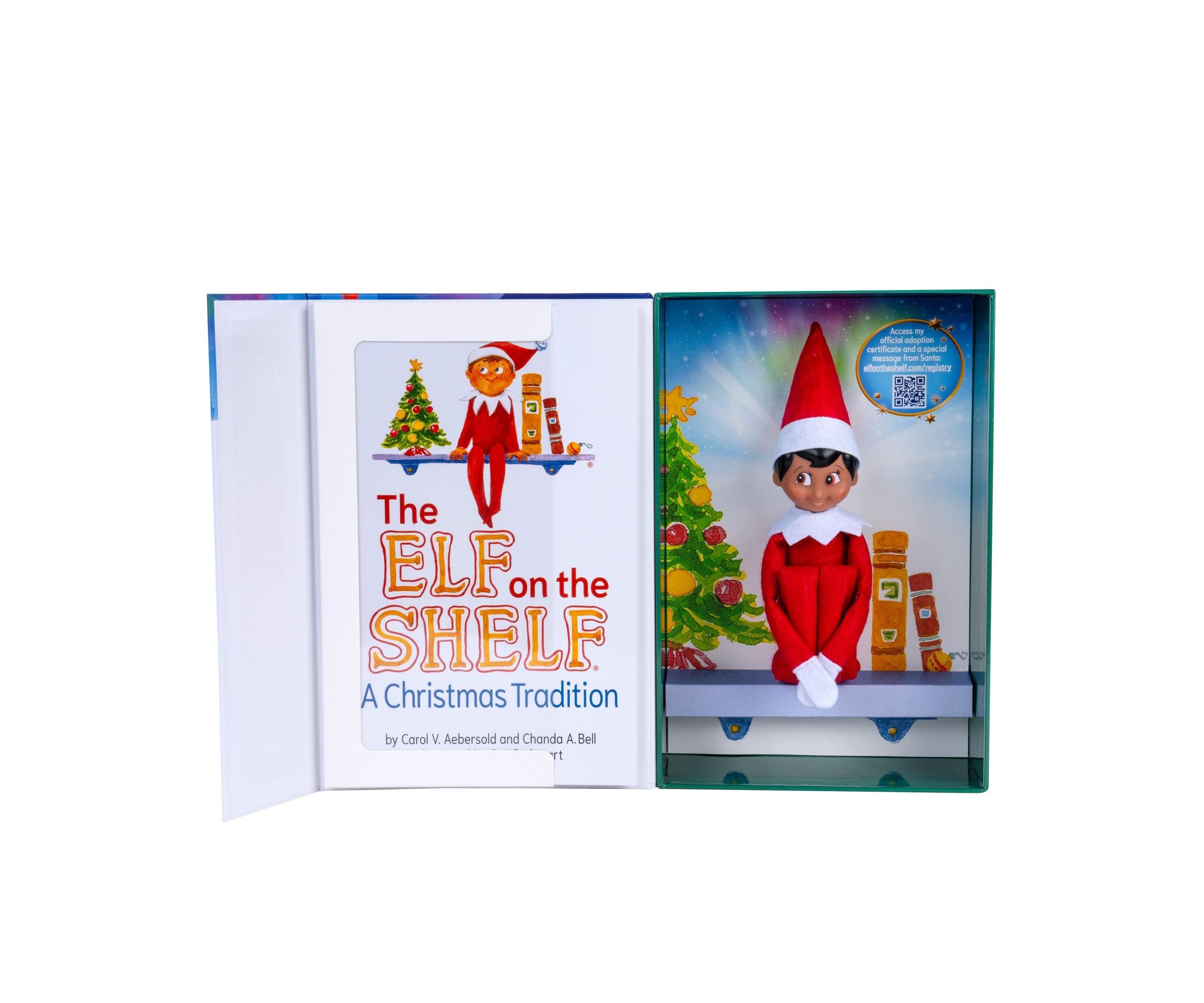Whisk away to a magical world of Christmas cheer each festive season with the Elf on the Shelf A Christmas Tradition Boy Brown Eyes Toy! This cuddly North Pole emissary comes packaged in a charming keepsake box, ready to be adopted into your family. Accompanied by an enchanting storybook, this Scout Elf brings the Christmas magic directly into your home, engaging the whole family in holiday fun.