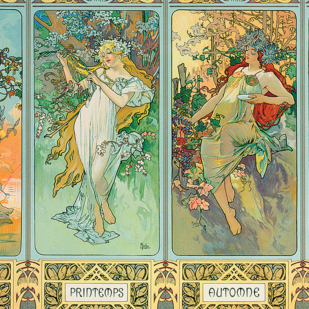 Features Alphonse Maria Mucha’s renowned ‘Four Seasons’