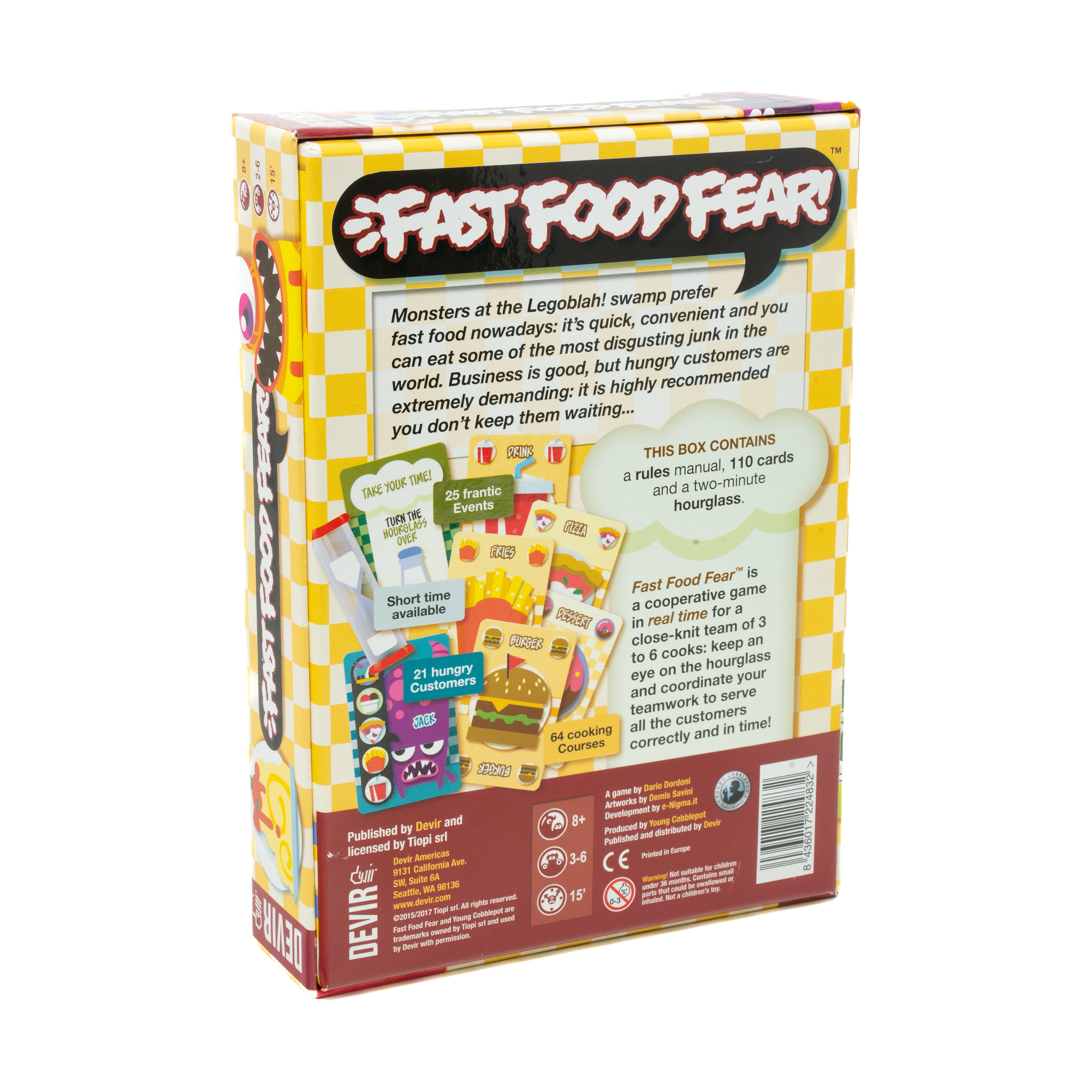 Gather your ghoul-friends and monster buddies around for a fast-paced culinary chaos with Fast Food Fear! In this thrilling cooperative board game, set in the treacherous Legoblah swamp, speed is the secret ingredient as you serve up some of the most ghastly gourmet dishes to your monstrous clientele. Don’t let the ever-draining two-minute hourglass run out, or face a hungry mob of creatures ready to gobble you up!