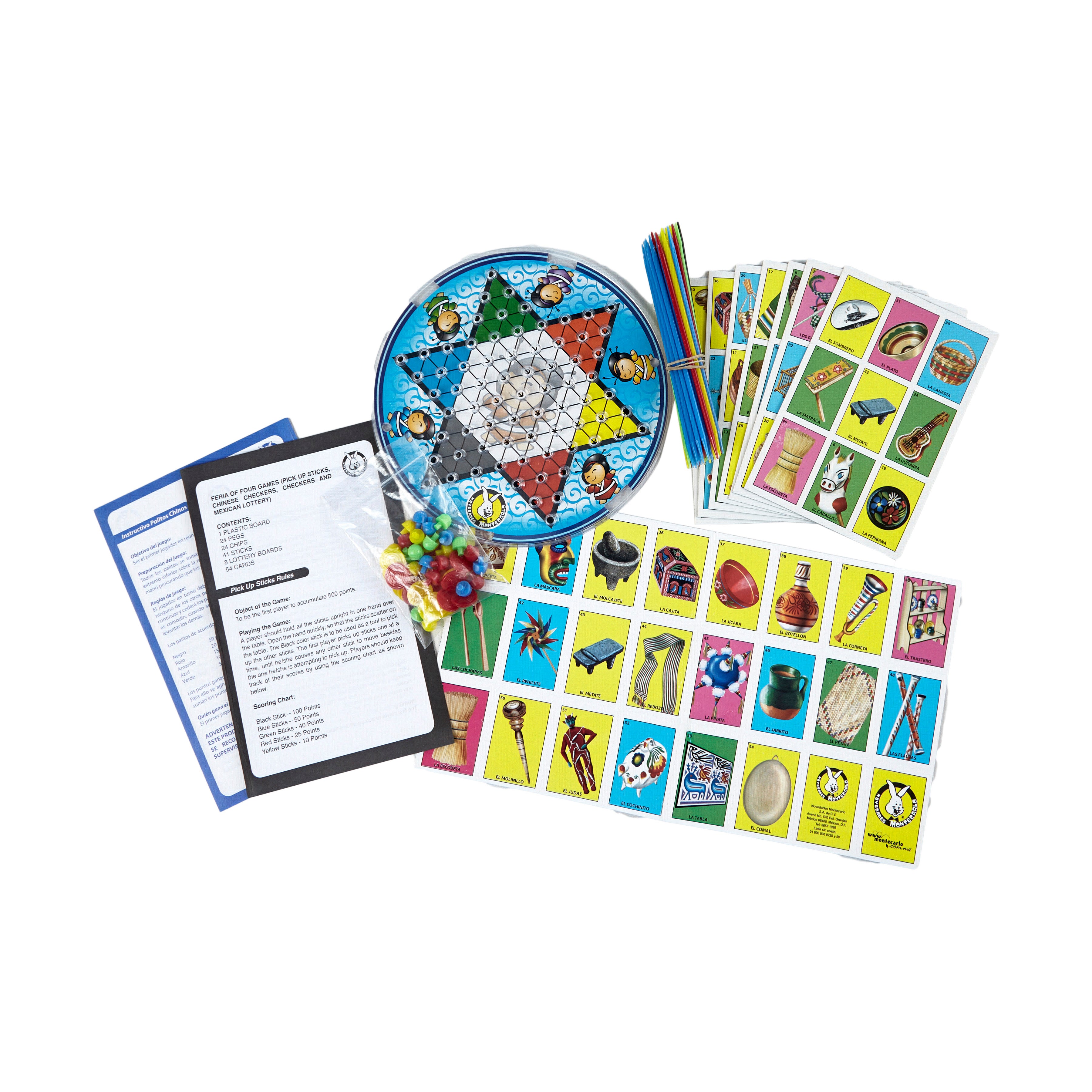 Say hola to endless hours of amusement with the Feria 4 in 1 Multigame Celebration Pack! Packed in one vibrant box, this set combines four of Mexico’s favorite games into a whirlwind of fun and memories. Whether you’re strategizing in Chinese Checkers, jumping pieces in Checkers, shouting ‘Bingo!’ in Loteria Mexicana, or delicately picking up sticks, there’s never a dull moment. Plus, bilingual instructions make it easy for everyone to join in the festivity!