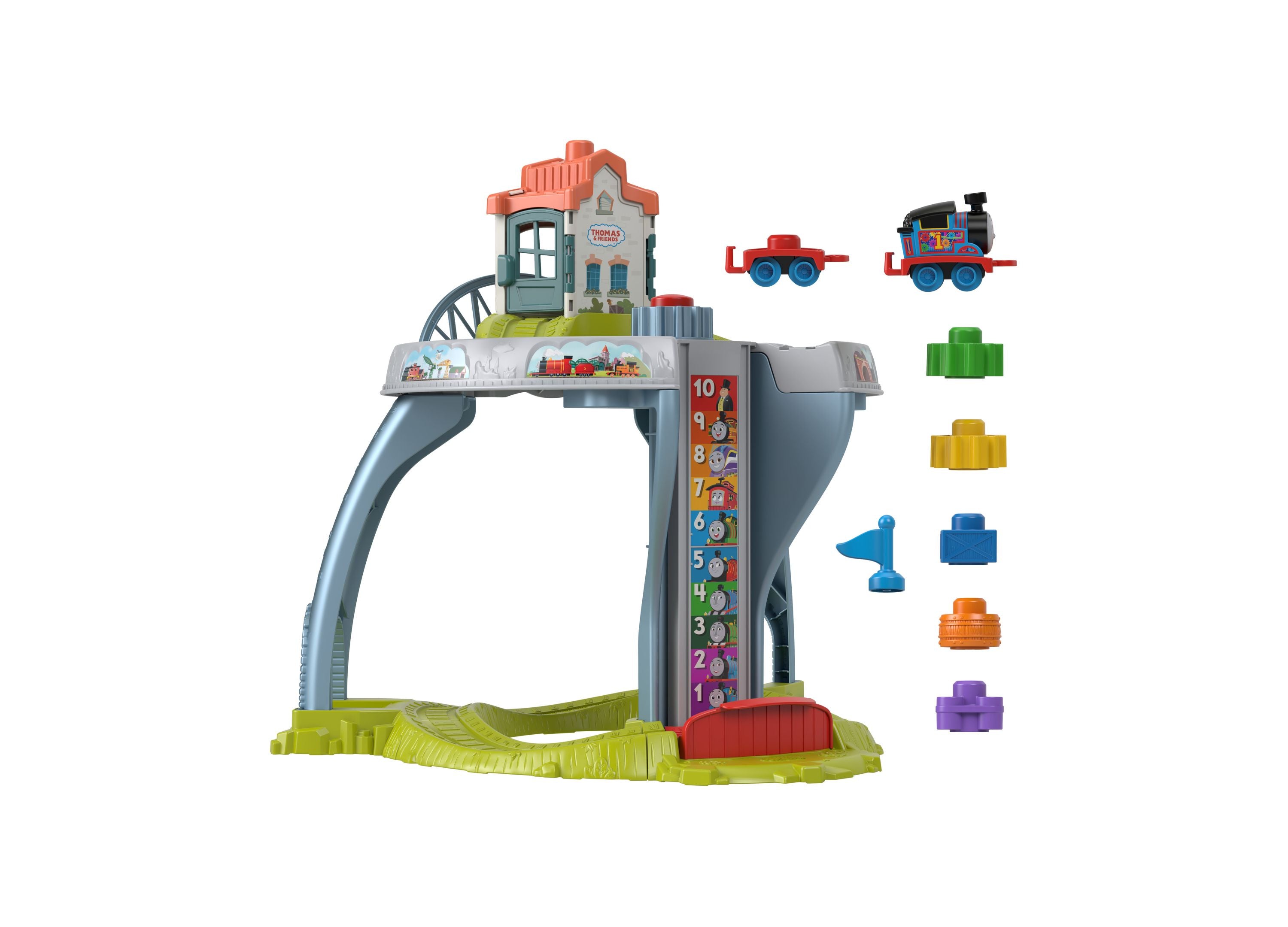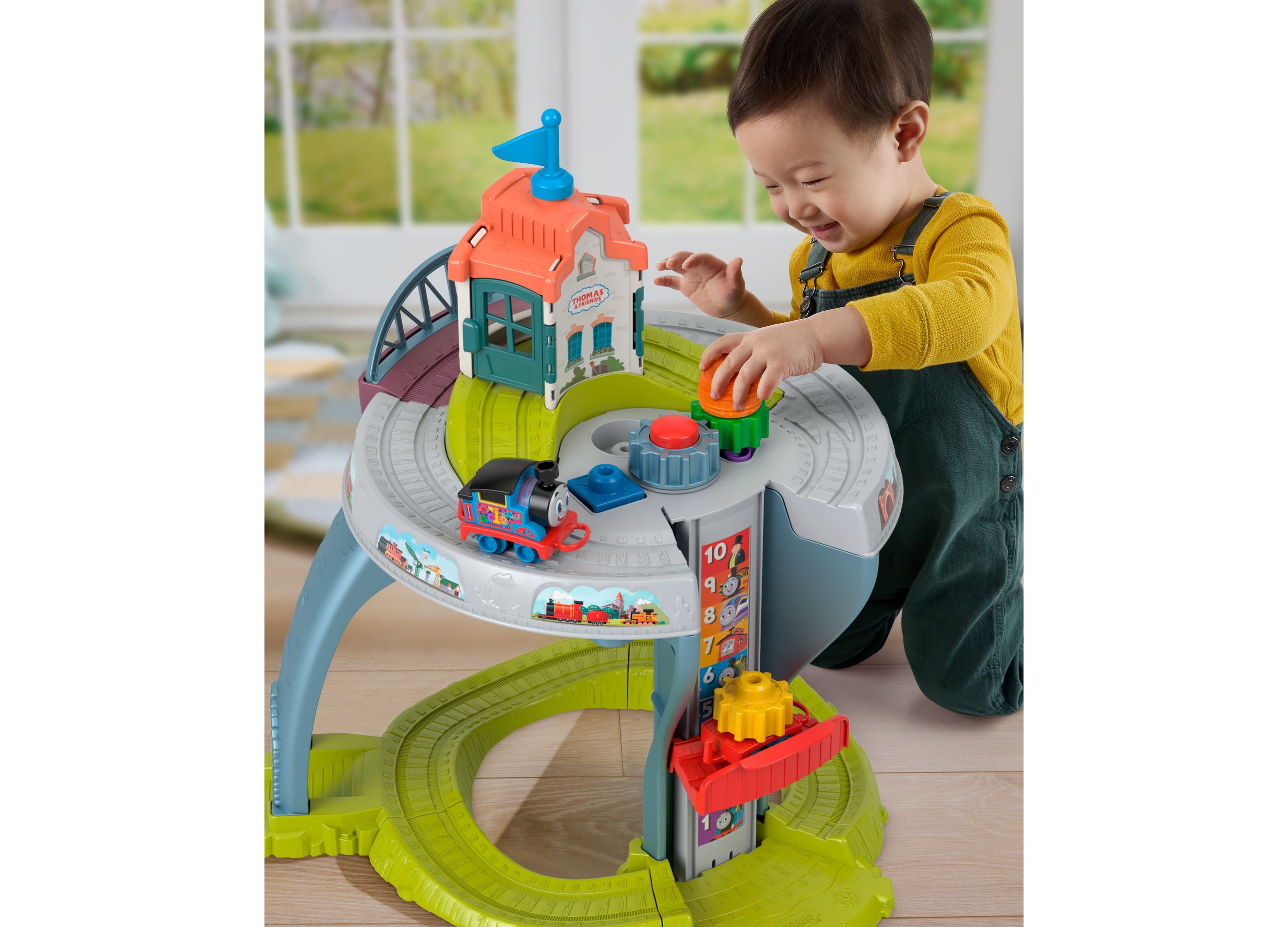 Choo-choo-choose adventure with the Thomas & Friends My First Train set from Fisher-Price! Towering over two feet tall, this delightful train table brings the island of Sodor to life for your little conductor. With two levels of railway fun, a whimsical teeter-totter bridge, and an animated elevator, the laughter and joy never end. Plus, the set comes with exciting play pieces including a flag, shape blocks, and gear pieces for endless interactive play.