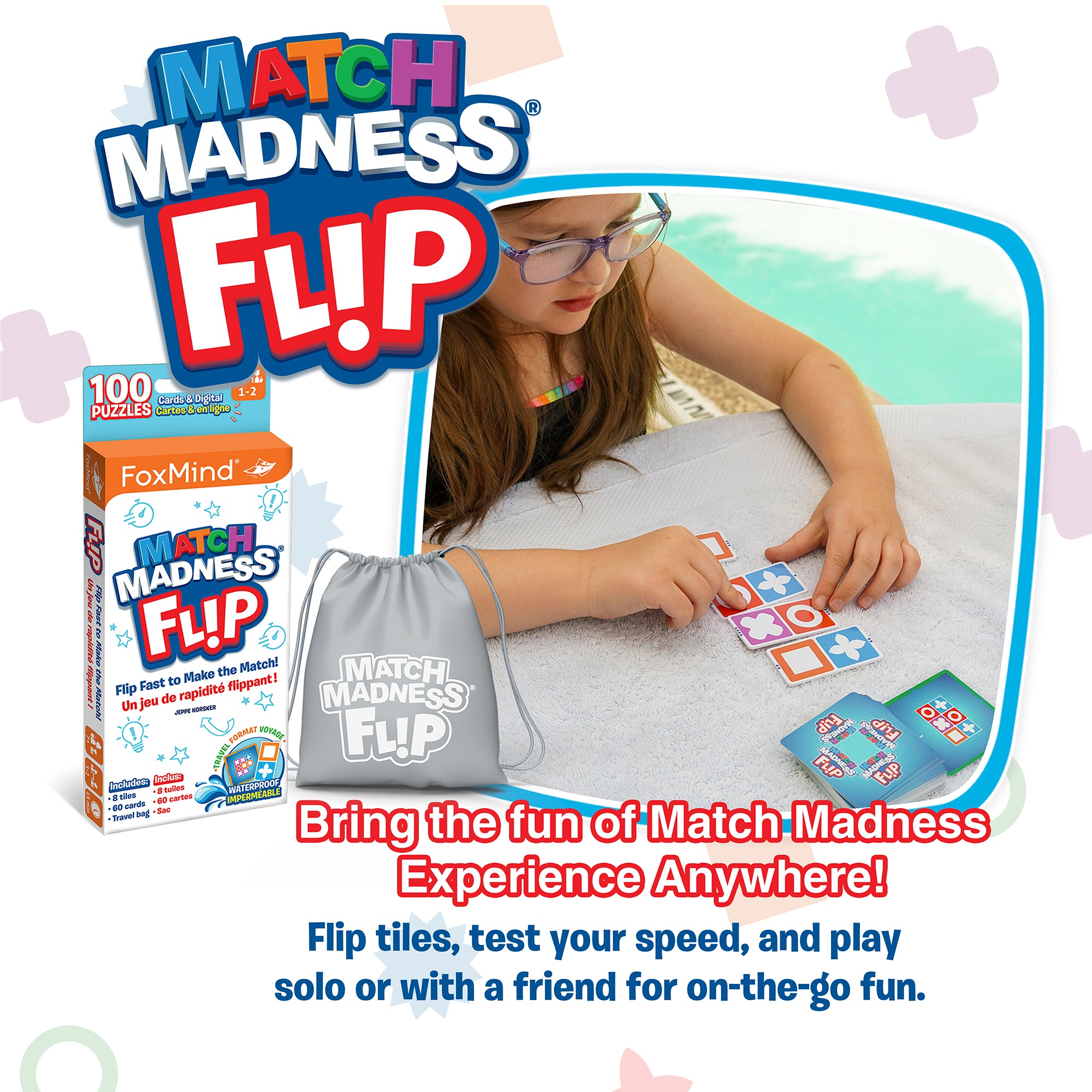 Foxmind Games Match Madness Flip – Travel Sized, Waterproof Pattern Puzzle