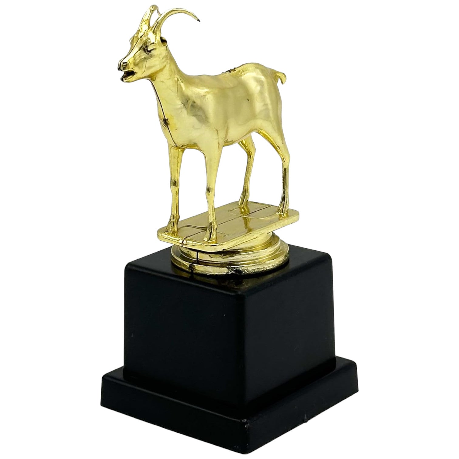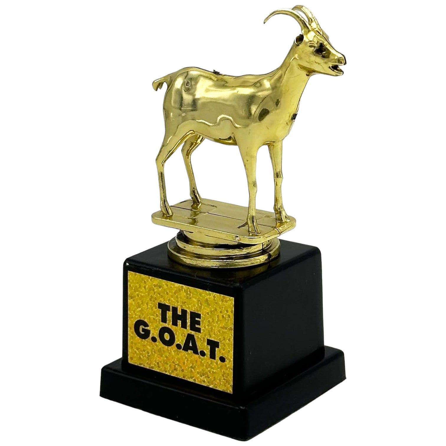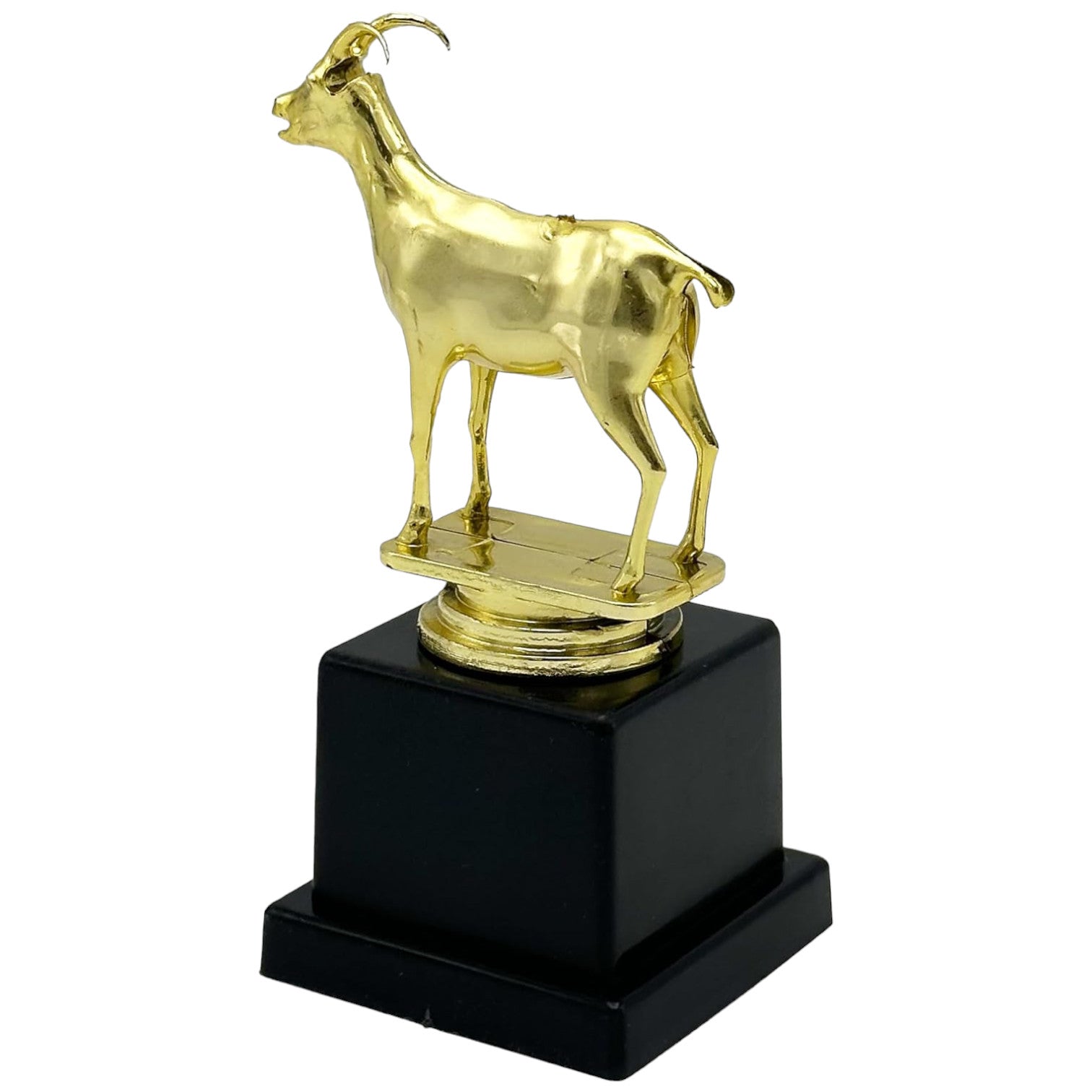Celebrate top-tier success with the G.O.A.T. Trophy, a glimmering symbol of triumph and excellence! This dazzling trophy boasts a gold-plated goat majestically perched on a robust black base, designed to capture the essence of achievement and honor the ‘Greatest Of All Time’. Whether it’s sports legends, business tycoons, or personal milestone smashers, this trophy is the perfect accolade for any leader.