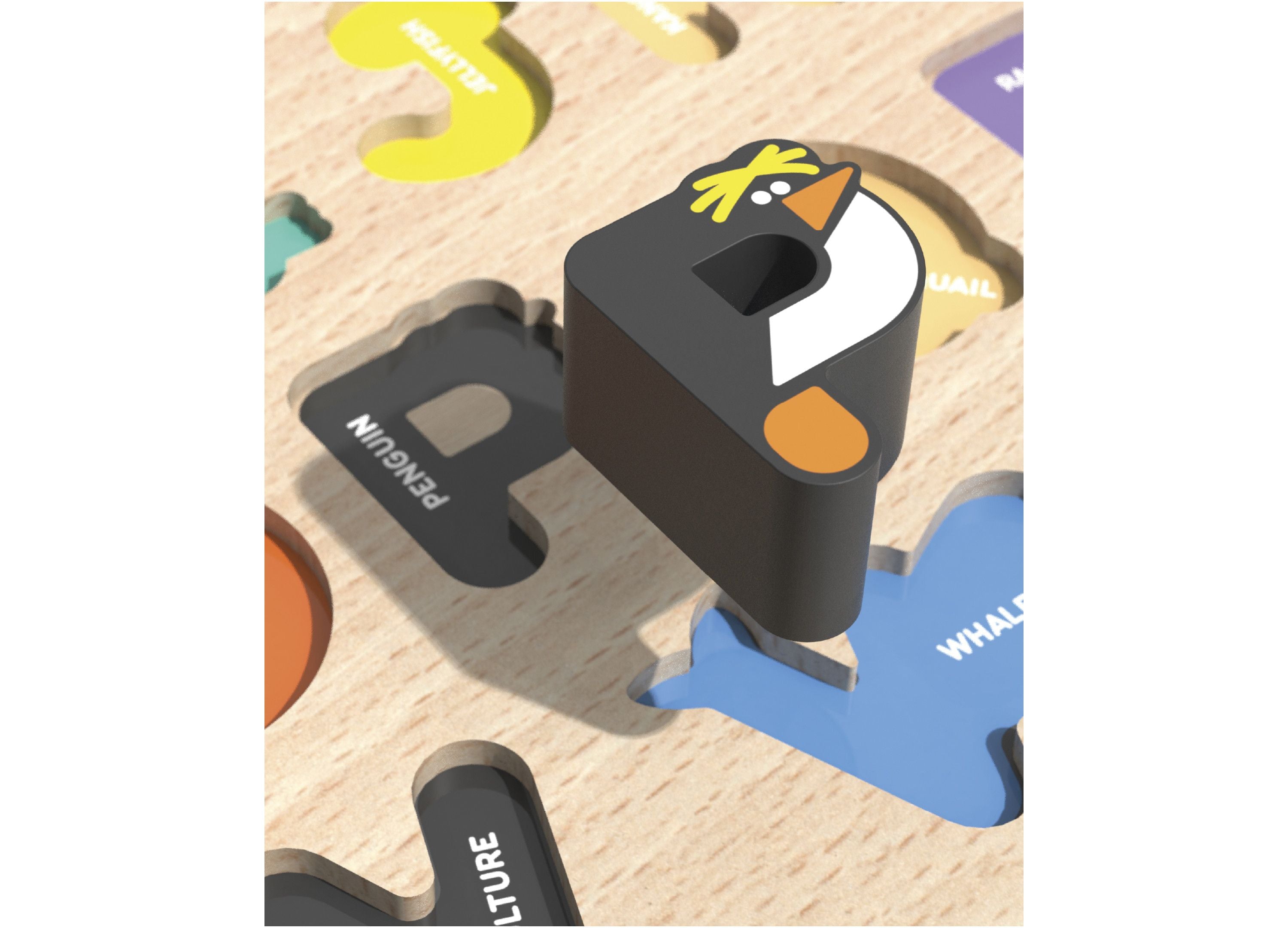 The Geoffrey’s Toy Box Animal Alphabet Jungle Puzzle Board is a wild ride through the alphabet, where every letter brings a new animal friend on board! Tailored for toddlers, this engaging wooden puzzle delights with its vivid illustrations and chunky letter pieces, perfect for small hands. Each letter piece is crafted to fit its unique spot on the puzzle tray, inviting little learners to match and explore.