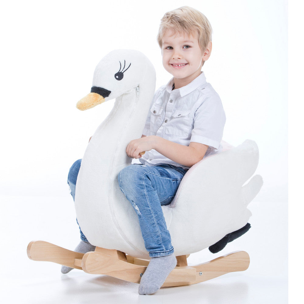 Gerardo’s Toys – Little Rockers Swan – Plush Wooden Ride-On Rocker, Musical