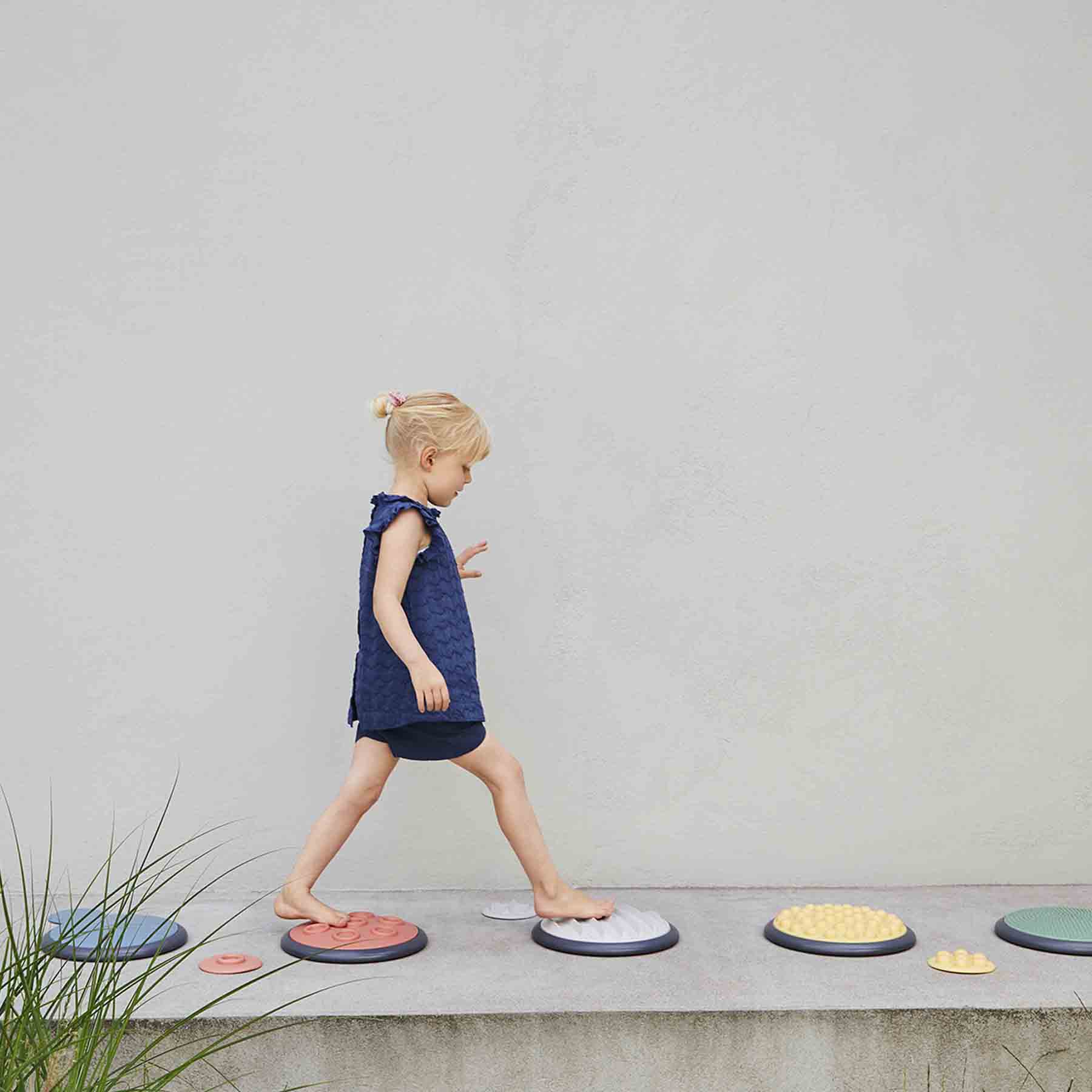 – Distinct tactile structures on each disc, encouraging exploration and verbal expression of sensory impressions