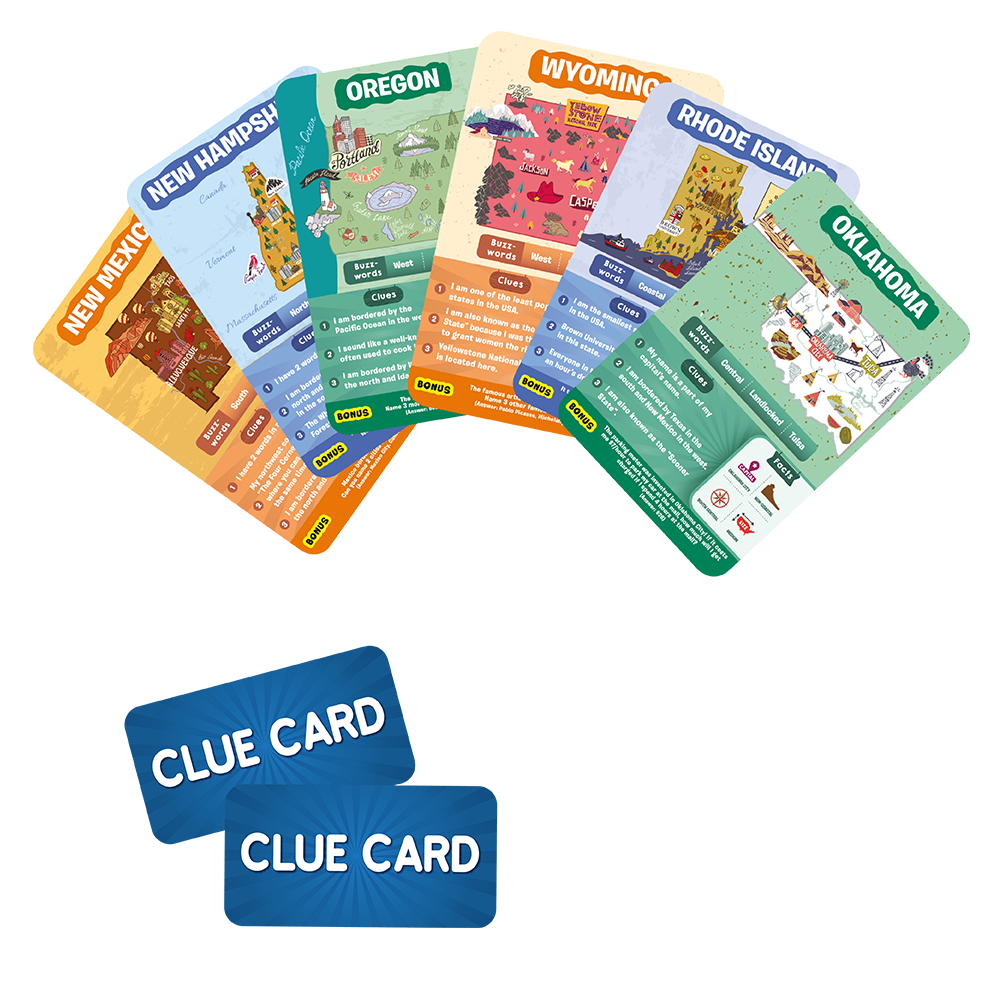 The Guess in 10 The 50 States Educational Board Game features: