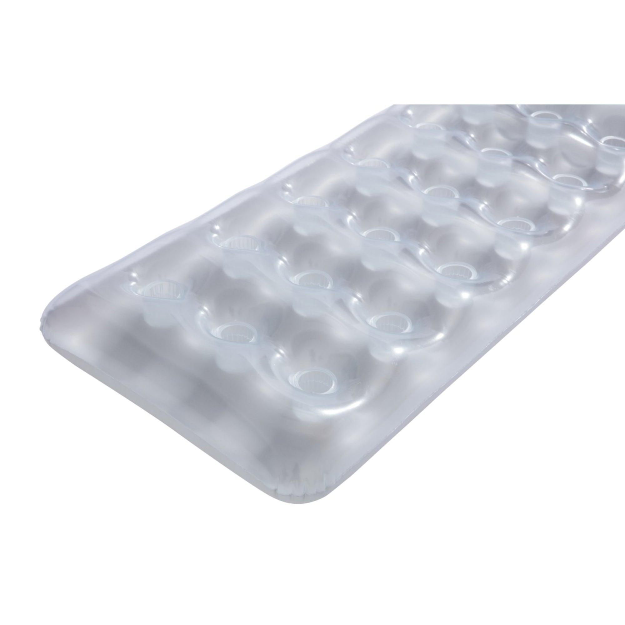 Unleash your inner mermaid with the H2OGO! 6’2″ x 28″ Metal Tech Lounge Inflatable Pool Float. Perfect for lounging in the pool, this float combines comfort and durability with a sleek, modern design. The transparent top and reflective metallic bottom not only add style but also enhance visibility in the water. With a built-in pillow and sturdy coil beam construction, it adjusts to your comfort needs, ensuring a relaxing time whether you’re sunbathing or just floating around.