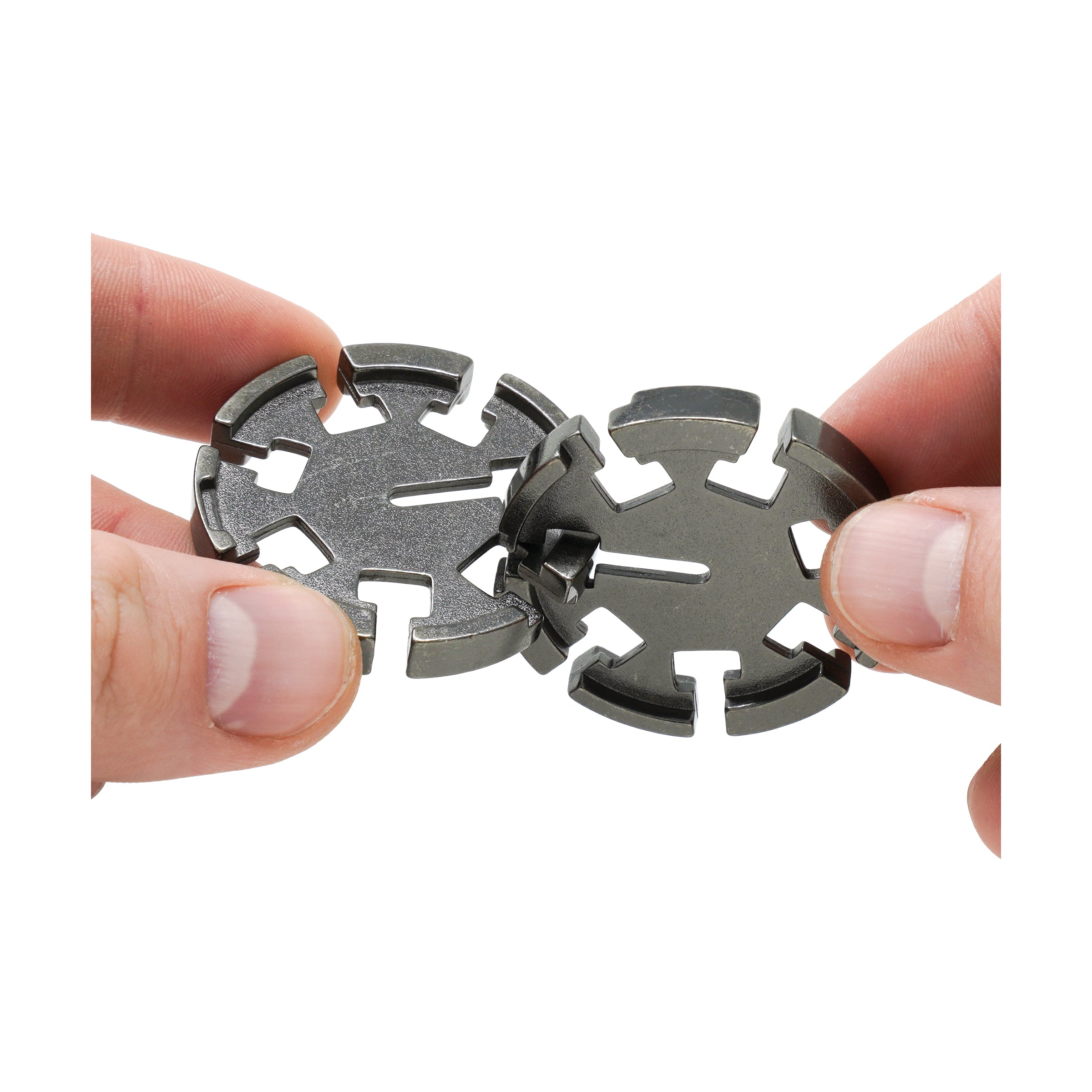 Twist and turn with the Hanayama Level 2 Cast Puzzle – Disk, a premium puzzle experience crafted by the ingenious Oskar van Deventer. Prepare to challenge your intellect and refine your problem-solving skills with this sleek, interlocking metal brain teaser. It’s not just a puzzle; it’s a battle of wits encased in high-quality cast metal, designed to disassemble and reassemble smoothly. Perfect for both new enthusiasts and seasoned puzzlers alike!