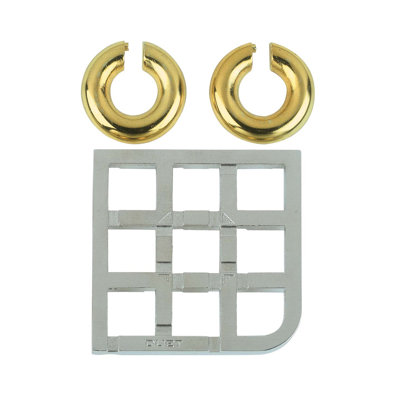 Tangle and untangle the enigma with the Hanayama Level 5 Cast Puzzle – Duet, your next puzzling adventure in metal! Perfect for analytical minds aged 12 and above, this beautifully designed brain teaser will have you at the edge of your seat. It may look simple with what seems to be one lonely ring hanging from its intricate metal grid, but don’t be fooled; there lurks a pair of rings, bound by a magnetic mystery waiting for you to unravel them.