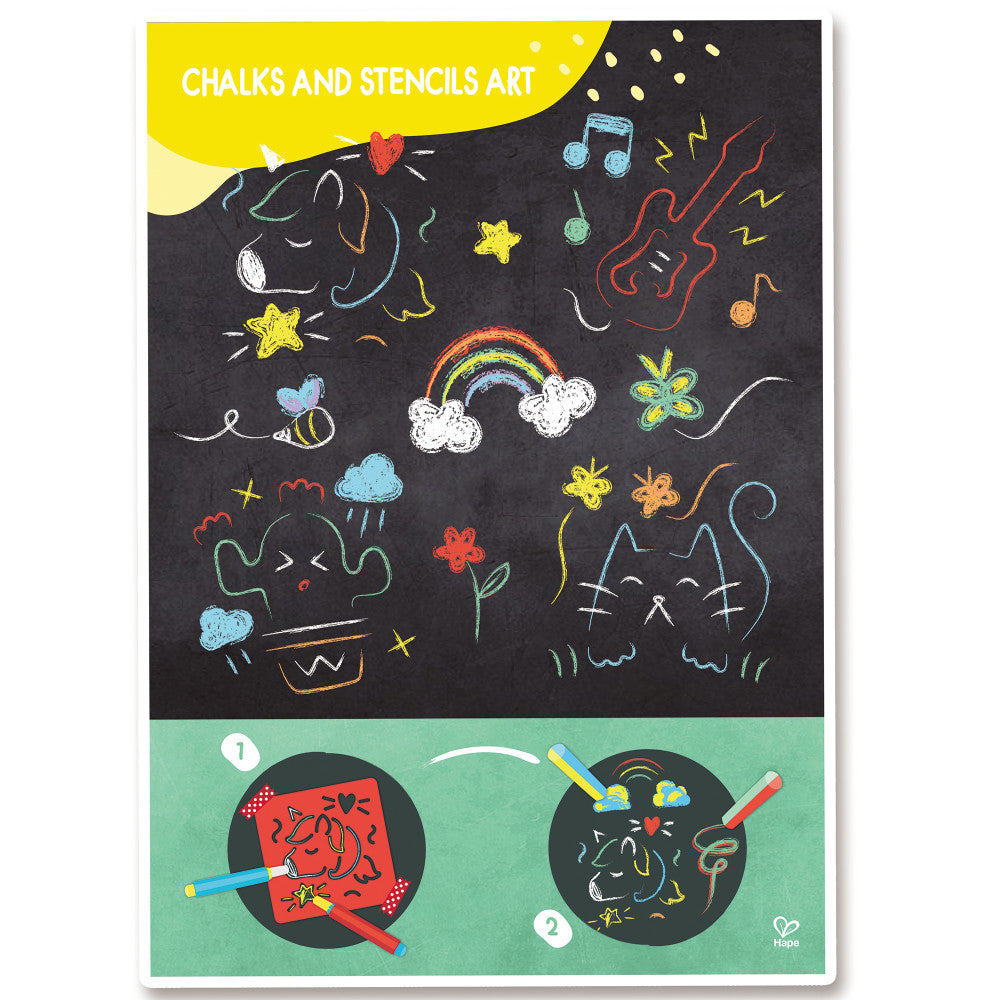 The Hape Chalks & Stencils Art Kit features: