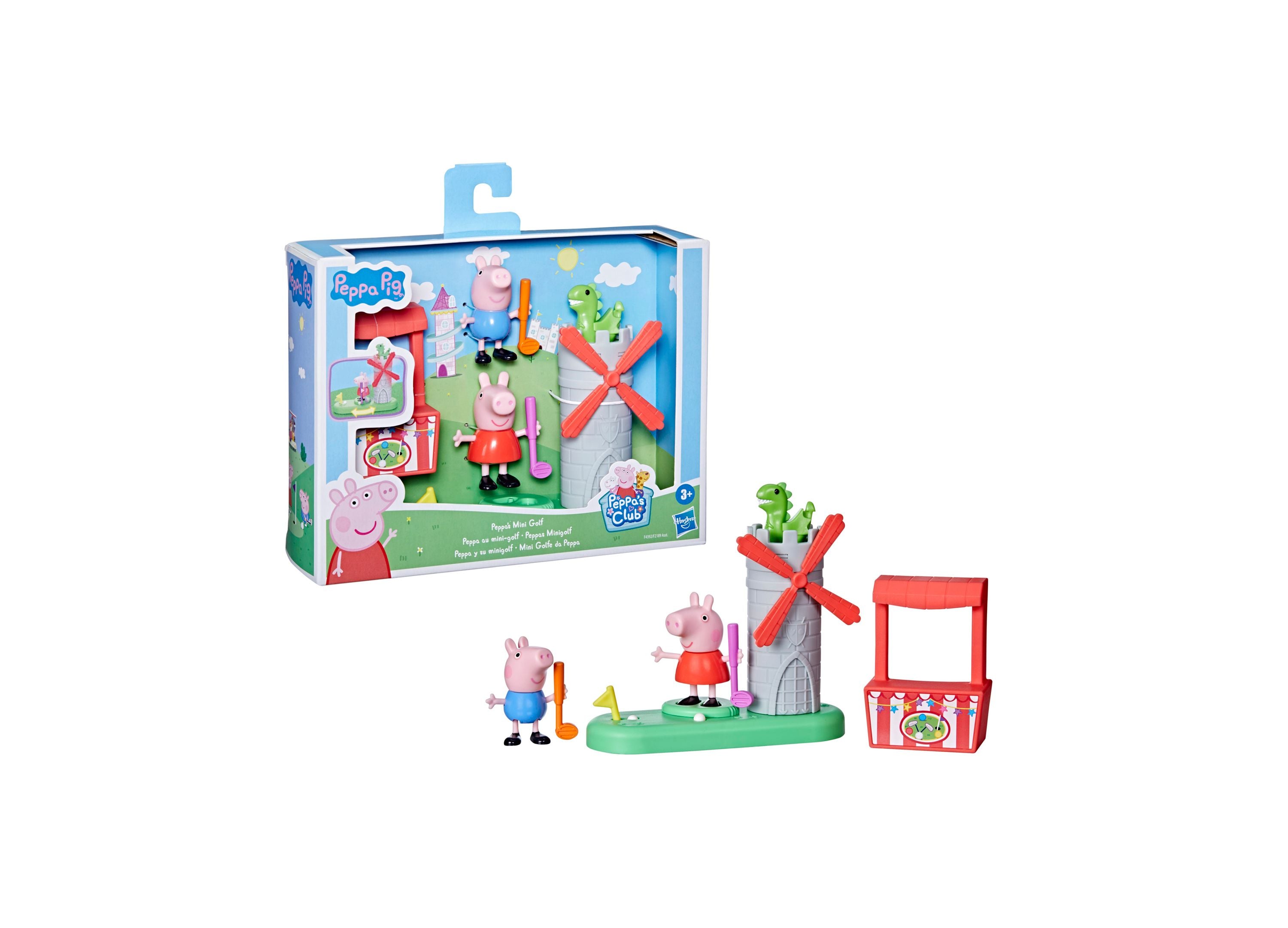 – Two detailed 3″ figures of Peppa and George, each equipped with a mini golf club and ball.