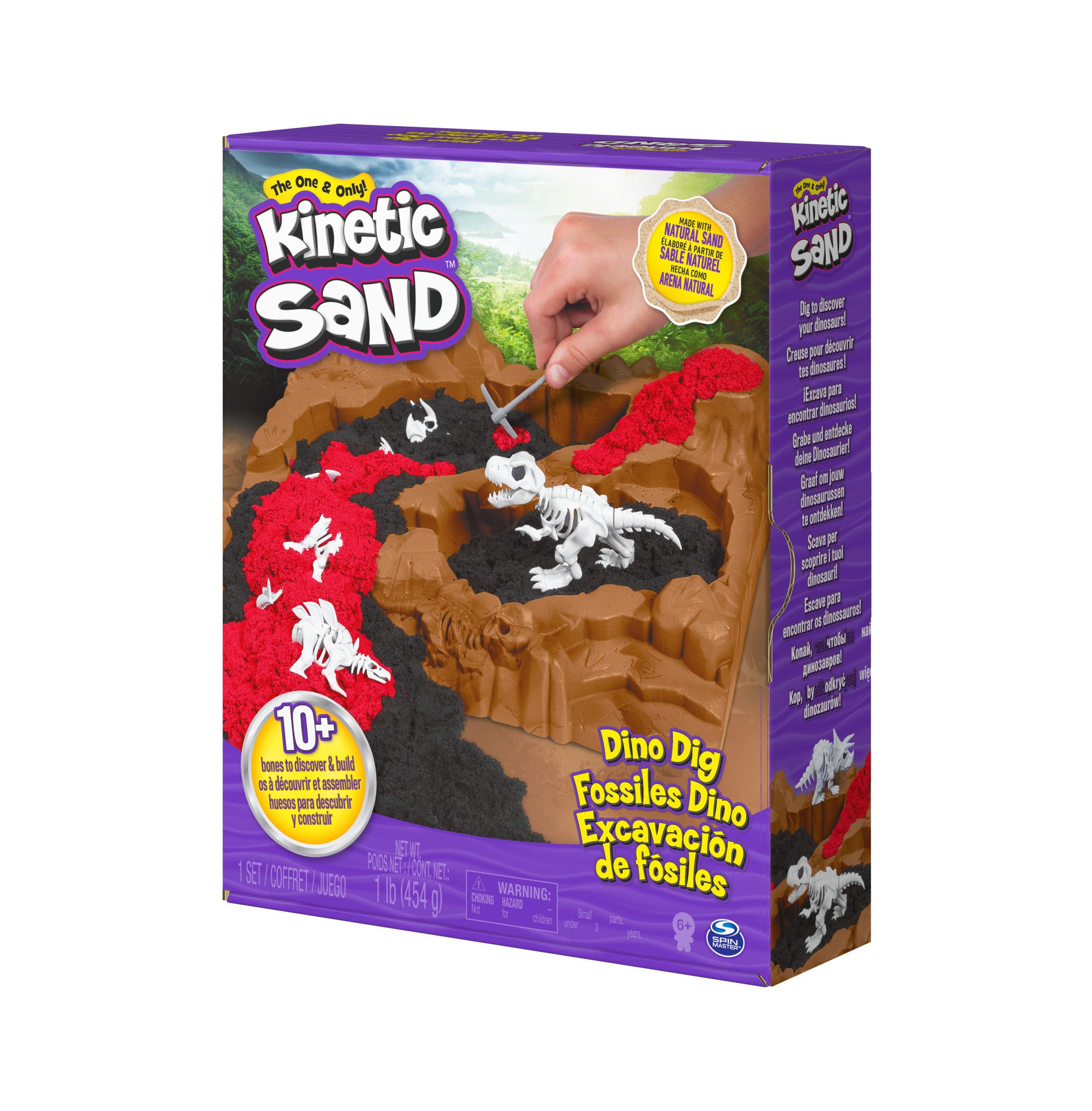 The Kinetic Sand, Dino Dig Playset features: