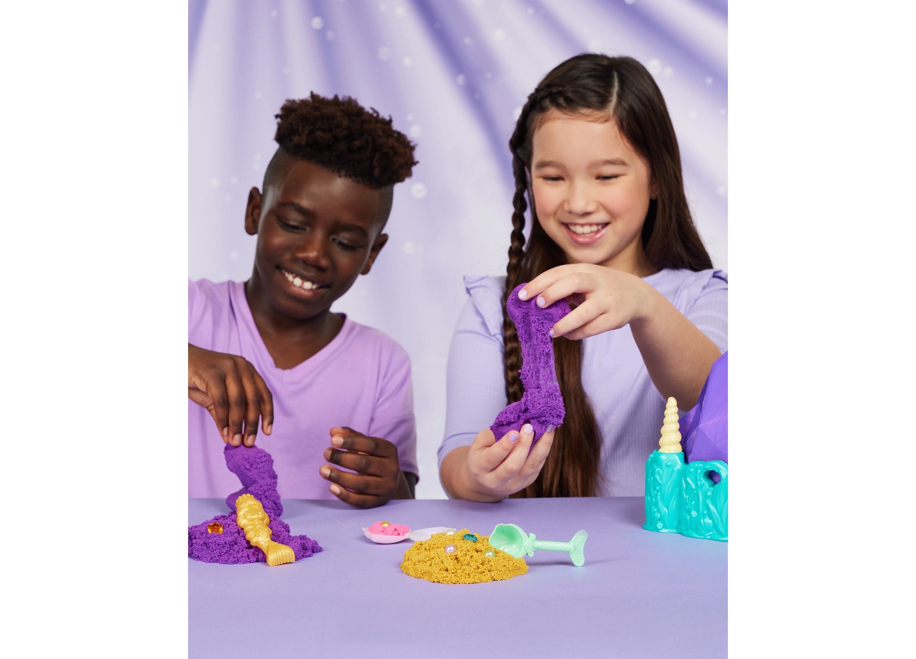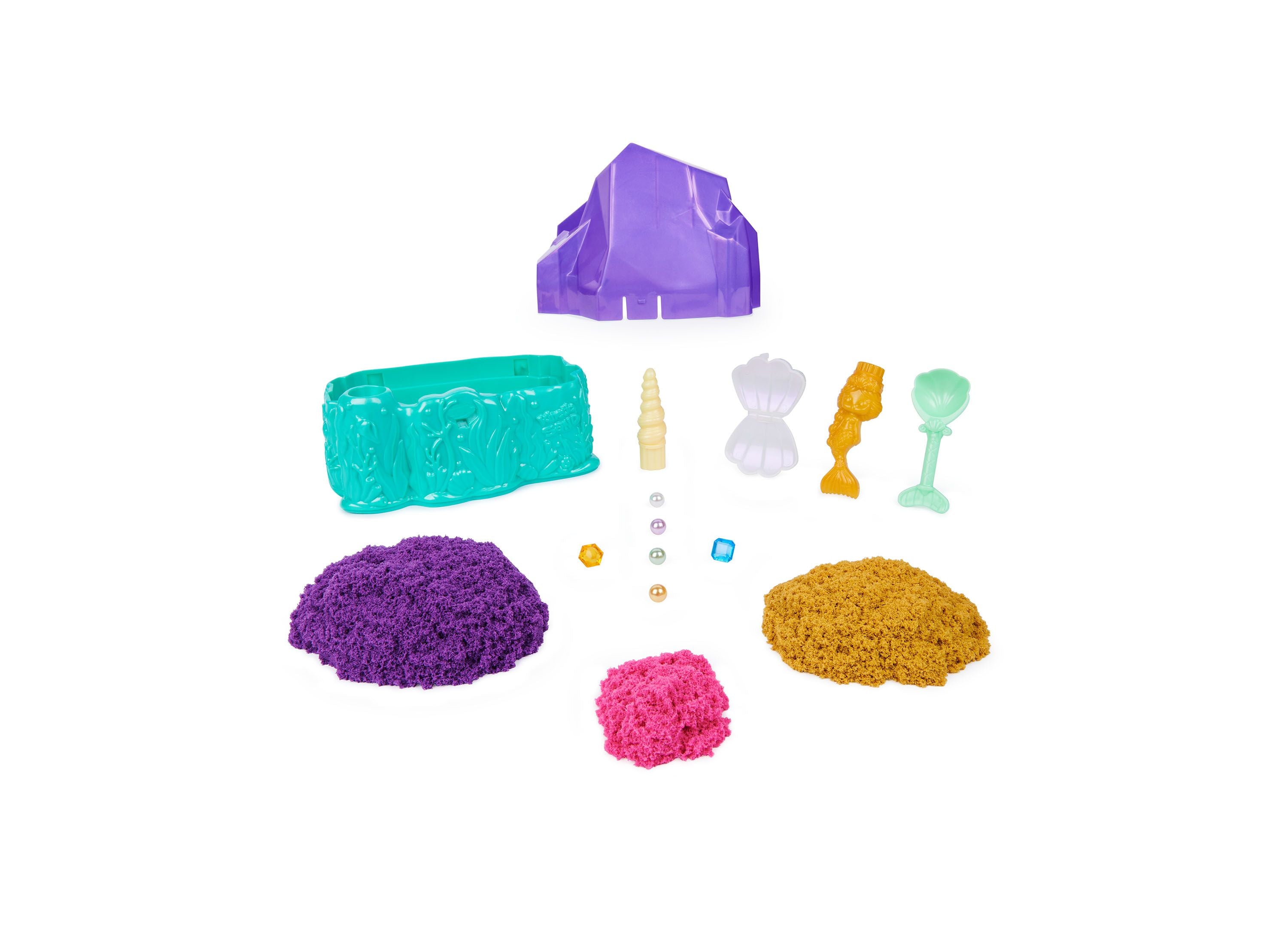 Kinetic Sand Mermaid Crystal Playset with Shimmer Gold Sand and Storage Tools
