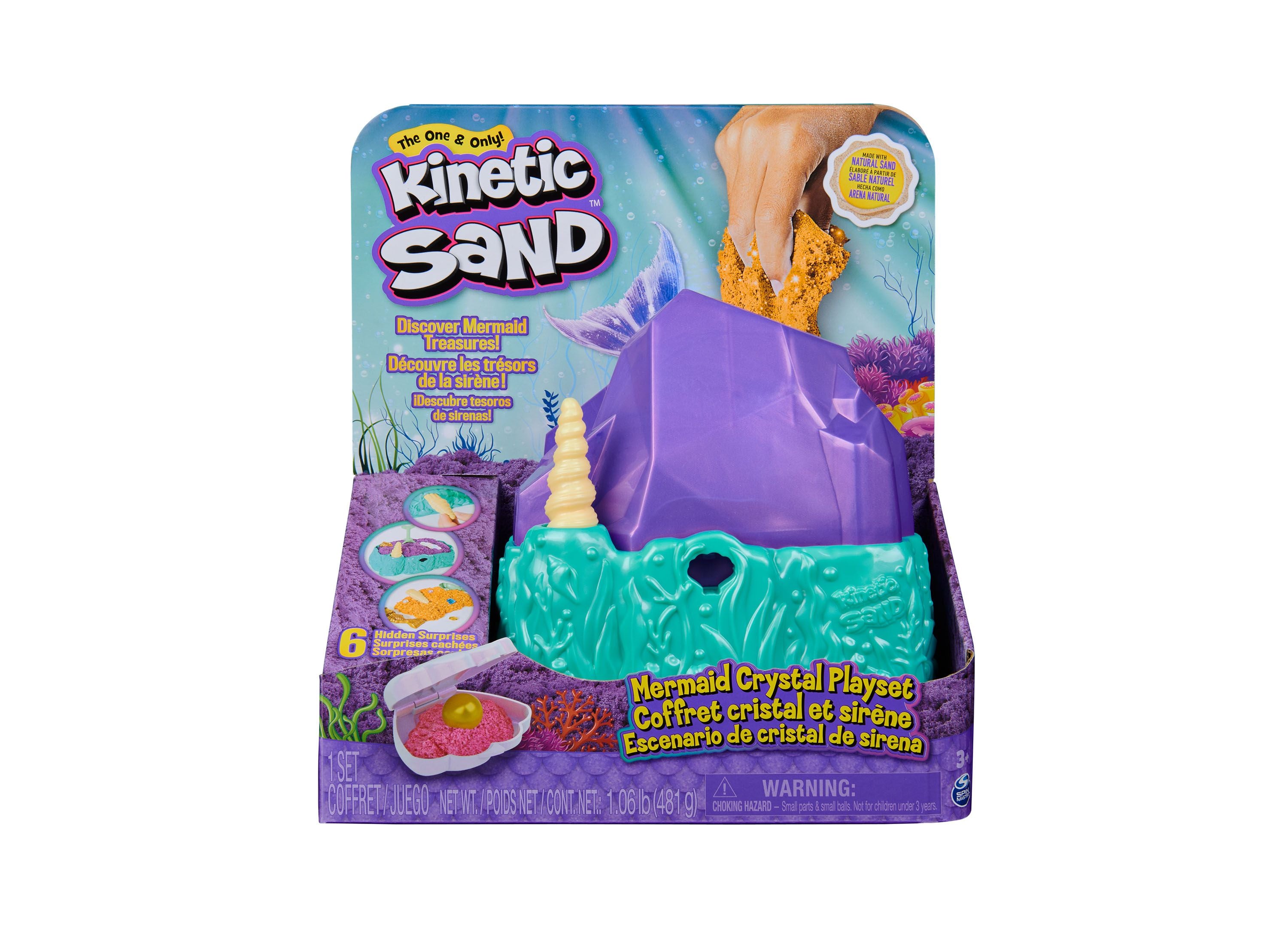 Dive into an underwater fiesta with the Kinetic Sand Mermaid Crystal Playset! This enchanting set allows children to mold, sculpt, and explore their creativity with over 1lb of mesmerizing Kinetic Sand, including vibrant neon and shimmering gold varieties. The playset features a unique crystal container that doubles as a storage and play space, complete with a mermaid key to unlock hidden treasures. Discover pearls, gems, and mermaid-themed tools like a shell scoop and roller, perfect for crafting detailed sand sculptures. The sand’s natural sticking properties ensure a clean play area and easy cleanup, making it an ideal choice for hours of imaginative play. Suitable for children aged 3 years and up, this playset is a wonderful addition to any toy collection, fostering creative and sensory skills while providing endless fun.