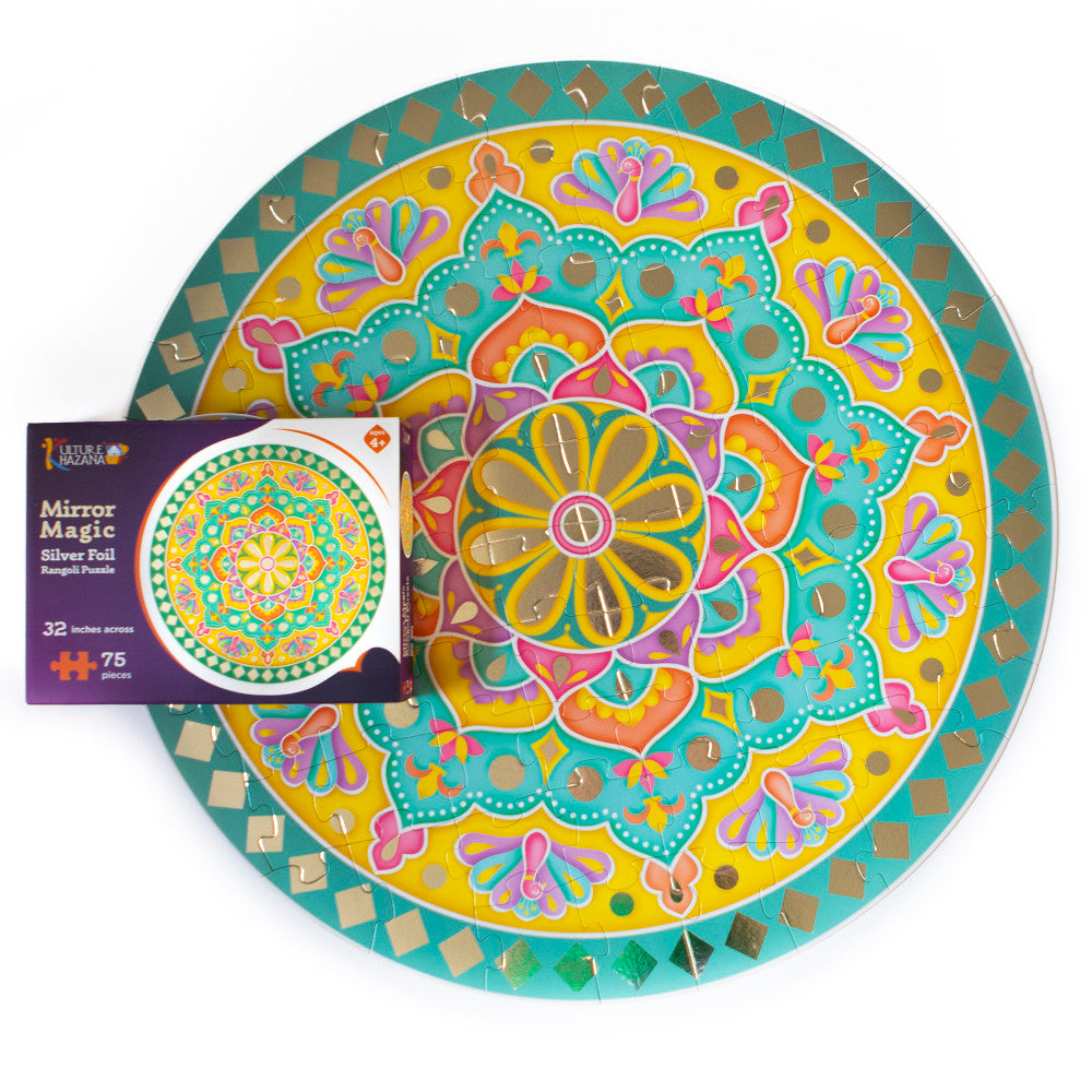 Kulture Khazana Mirror Magic Silver Foil Rangoli Floor Puzzle – 75pc