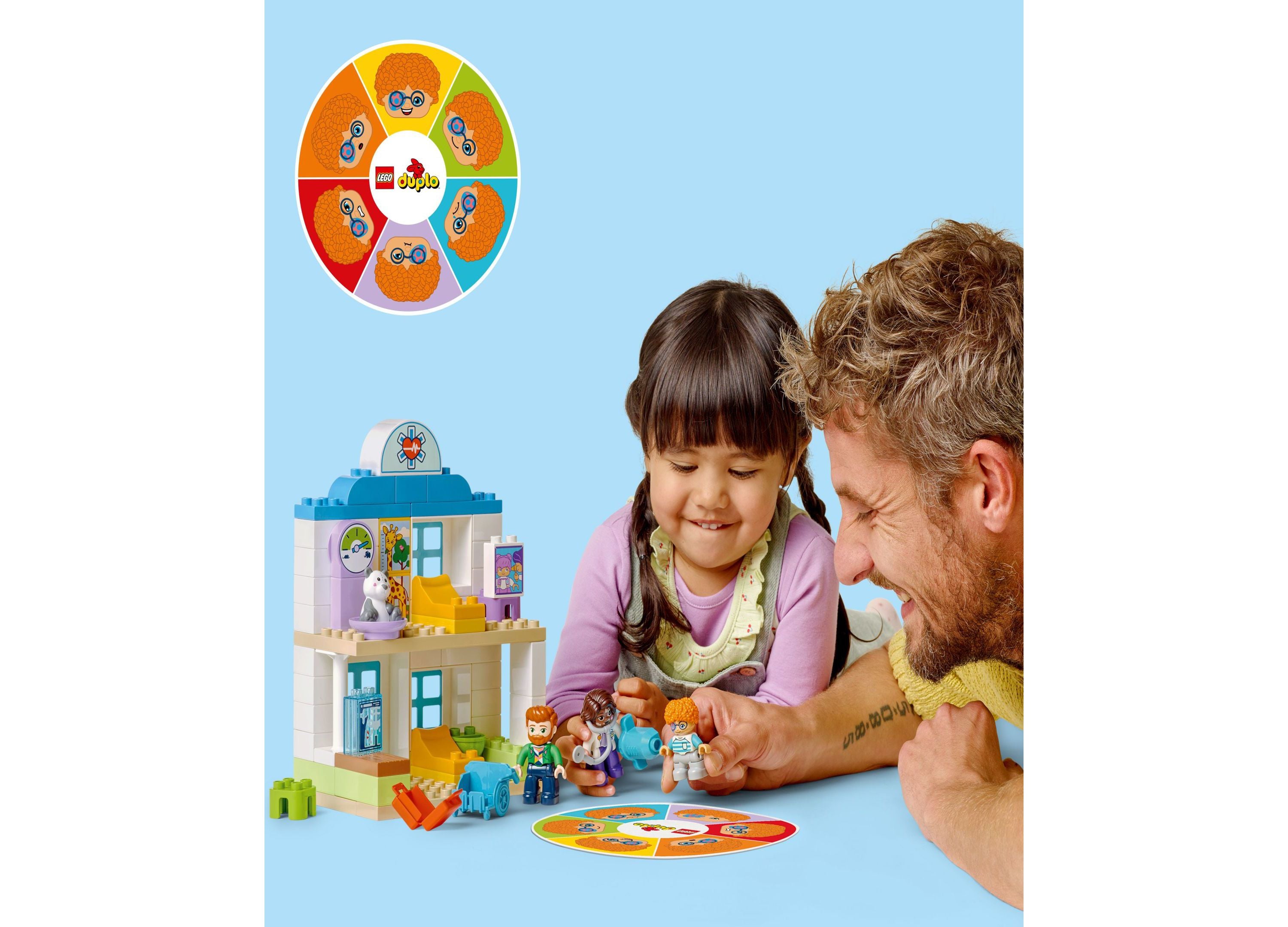 The LEGO DUPLO Town First Time Visit with the Doctor Office Building Toy Playset 10449 features: