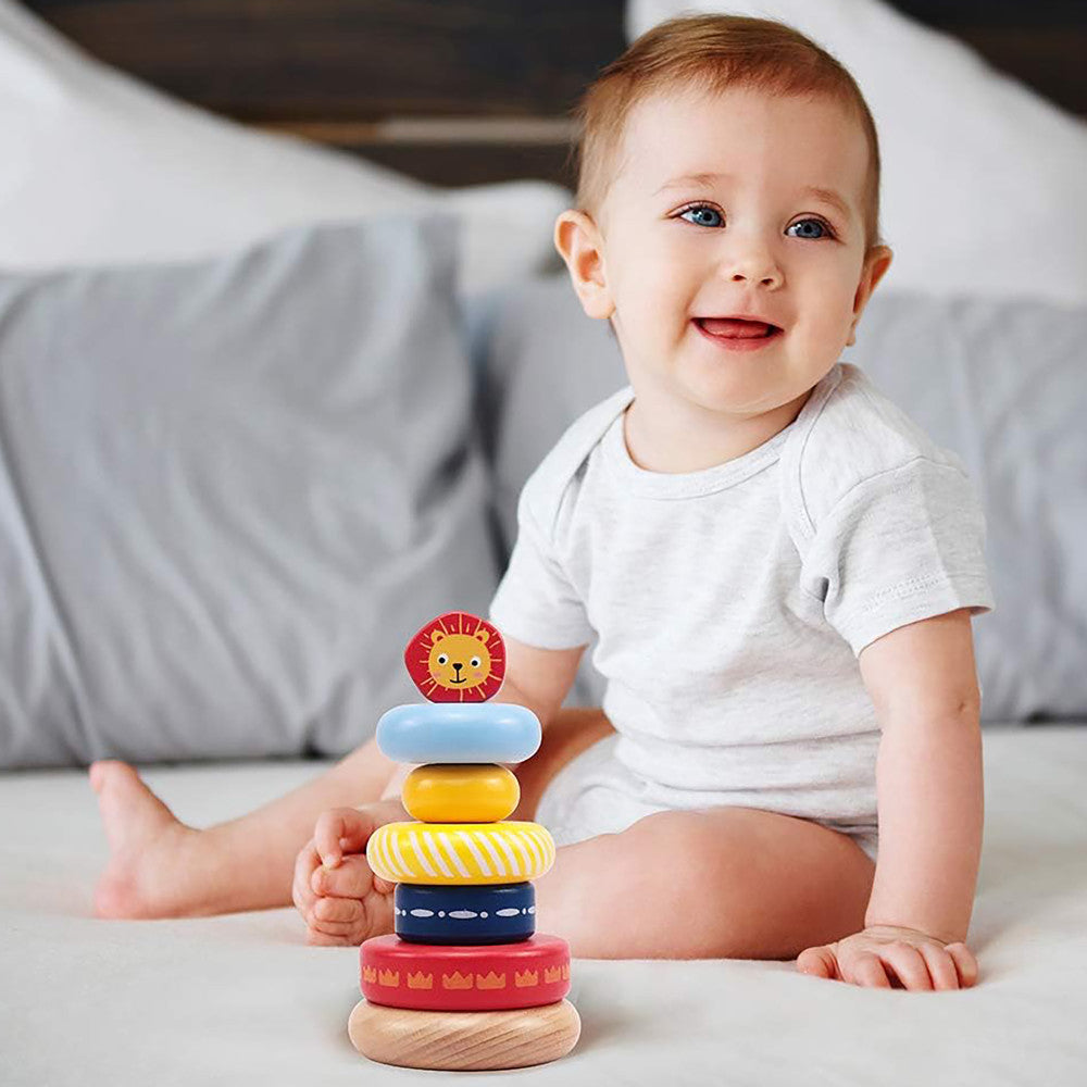 LEO & FRIENDS Lion-Top Wooden Stacking Ring Toy – Colorful