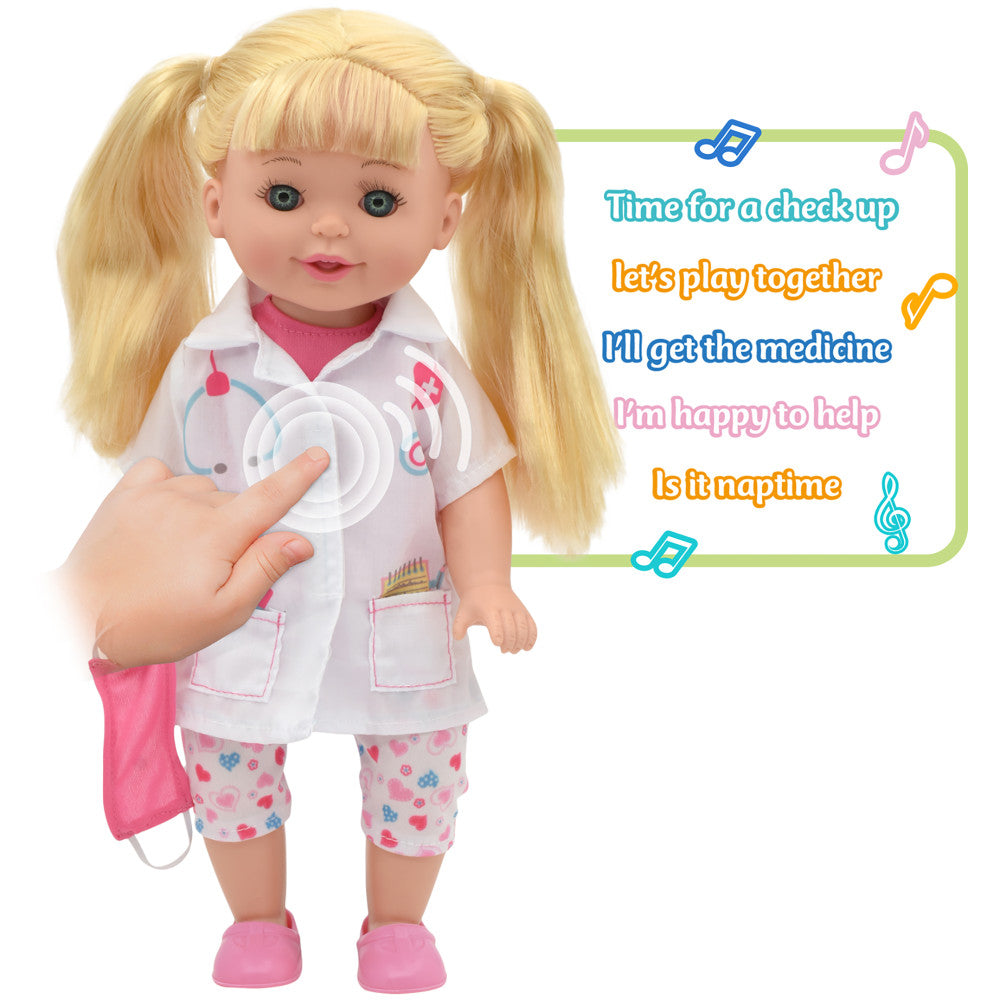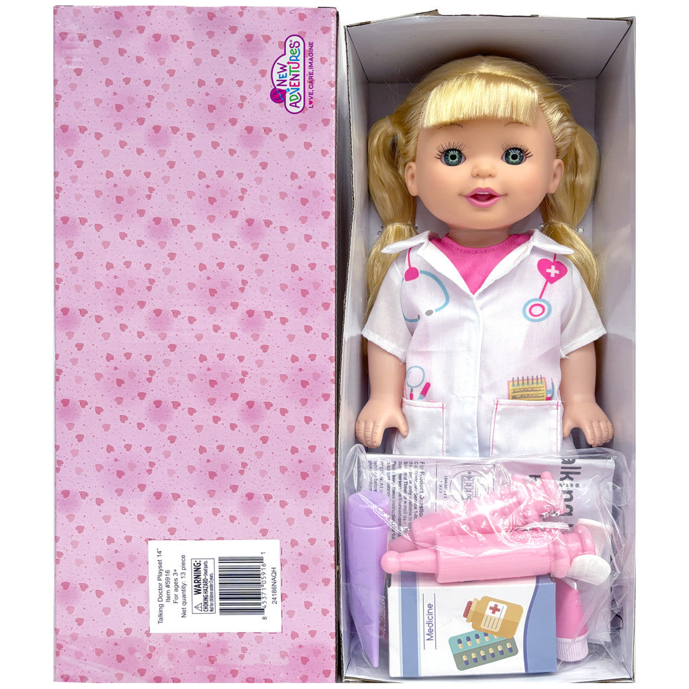 Lil Tots Talking Doctor Playset – 14″ Blonde Doll with Pink & White Outfit
