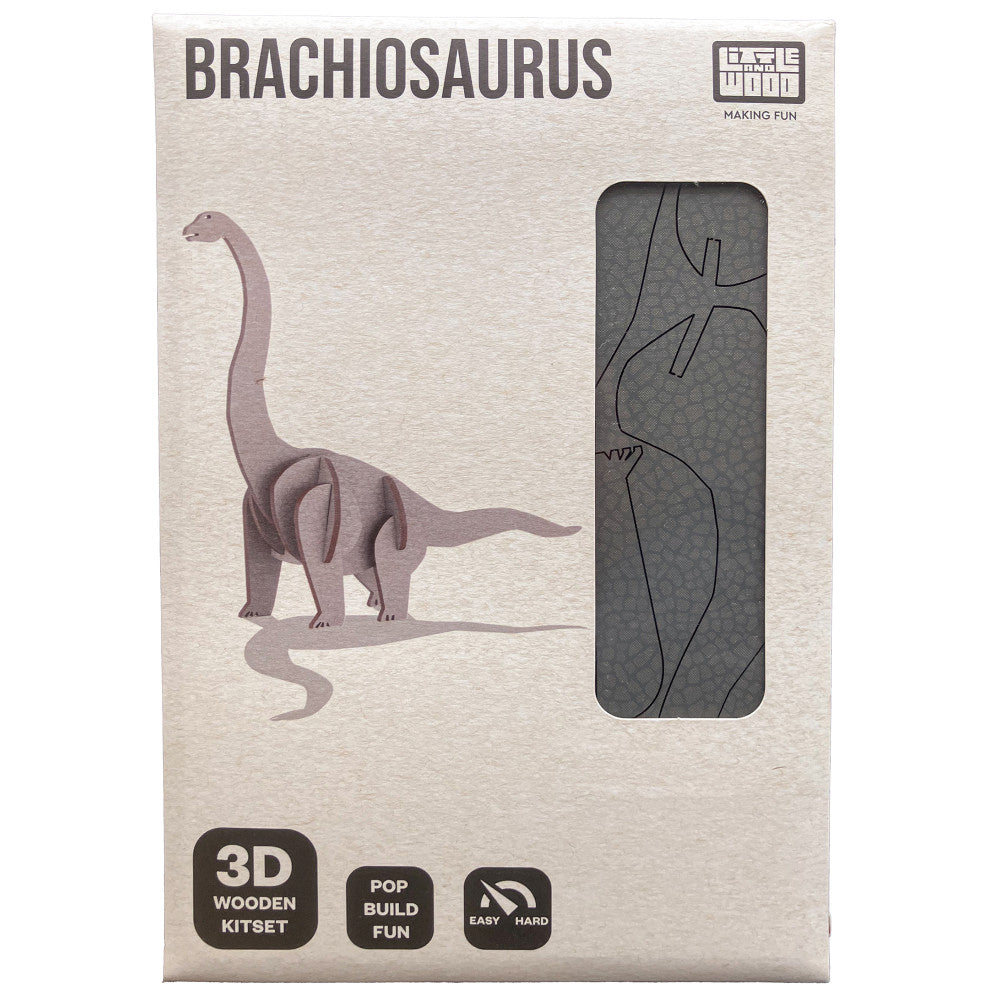 Little & Wood Brachiosaurus: Medium Grey 3D Wooden Dino Puzzle Kit