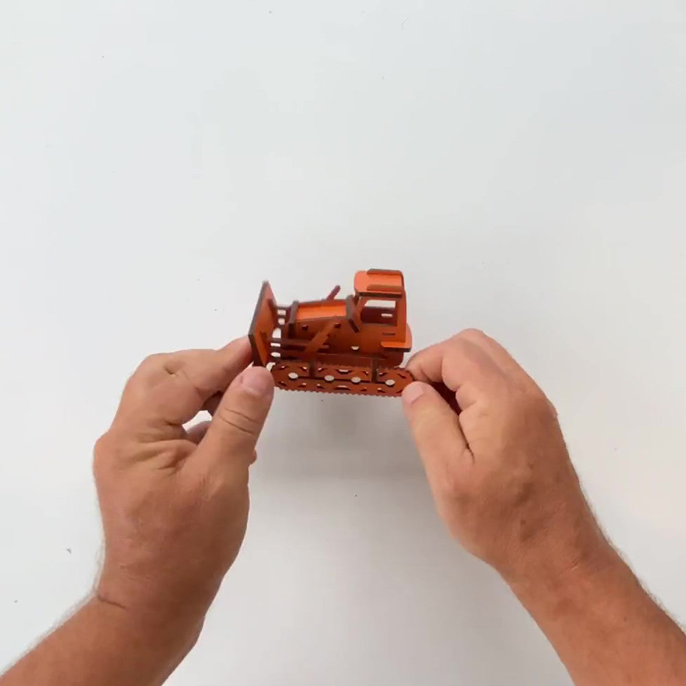 Little & Wood: Bulldozer Medium – 3D Wooden Model Kit, Orange