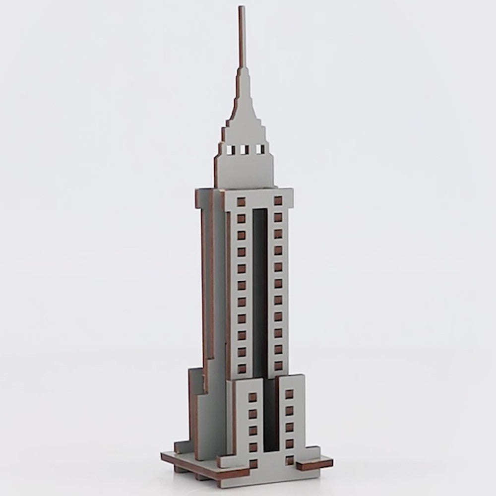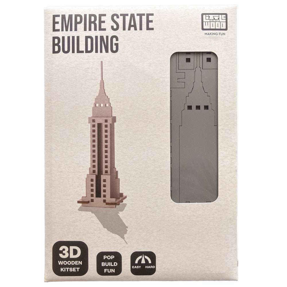 Little & Wood Empire State Building: 3D Wooden Puzzle Kit – Medium, Grey