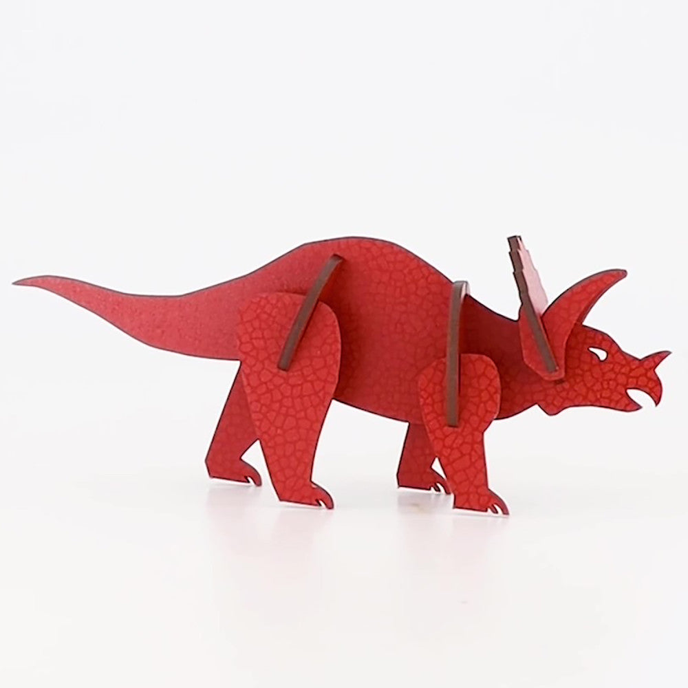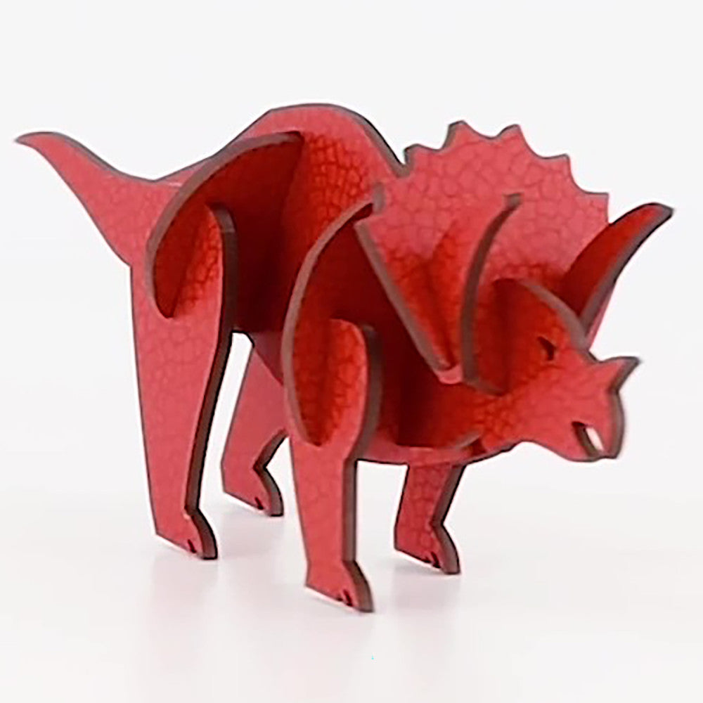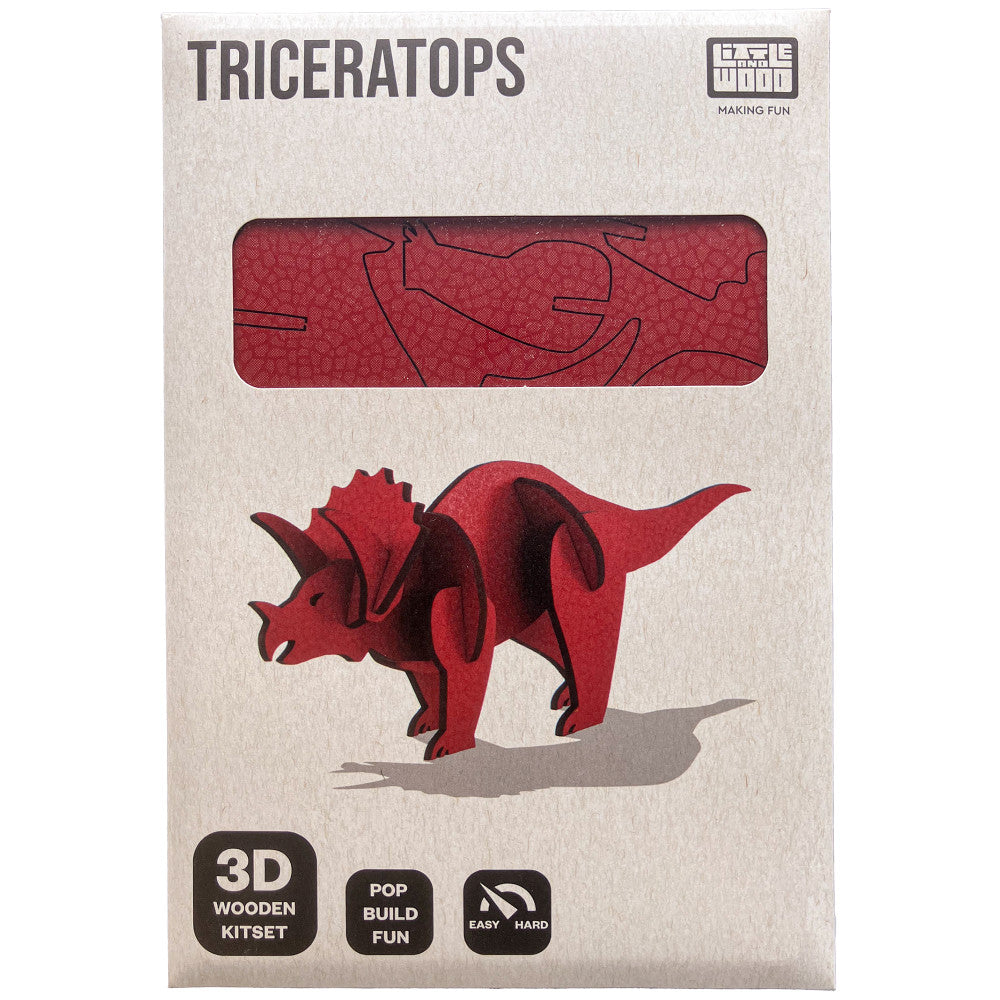 Little & Wood: Triceratops Red 3D Wooden Puzzle Kit, Medium