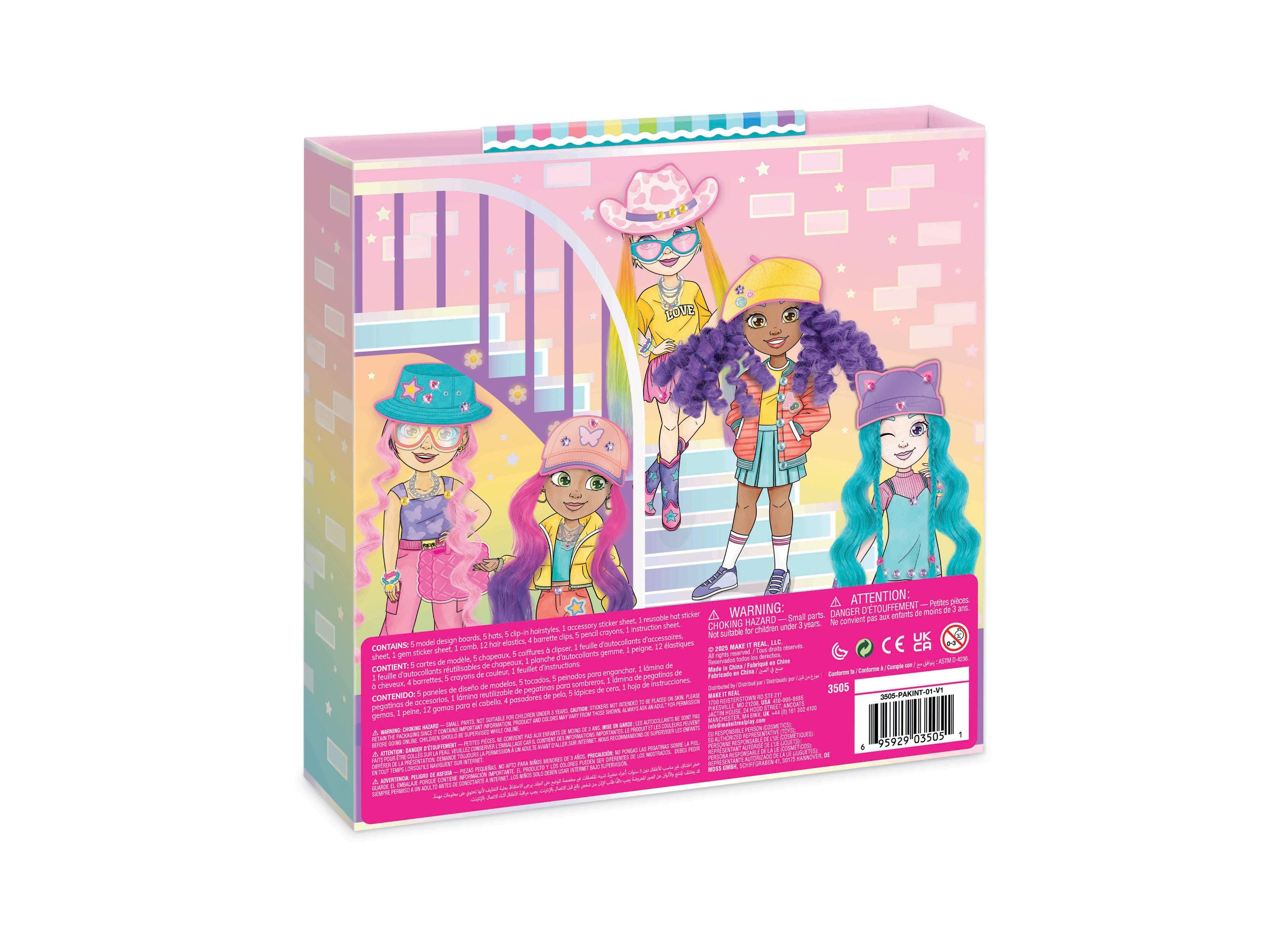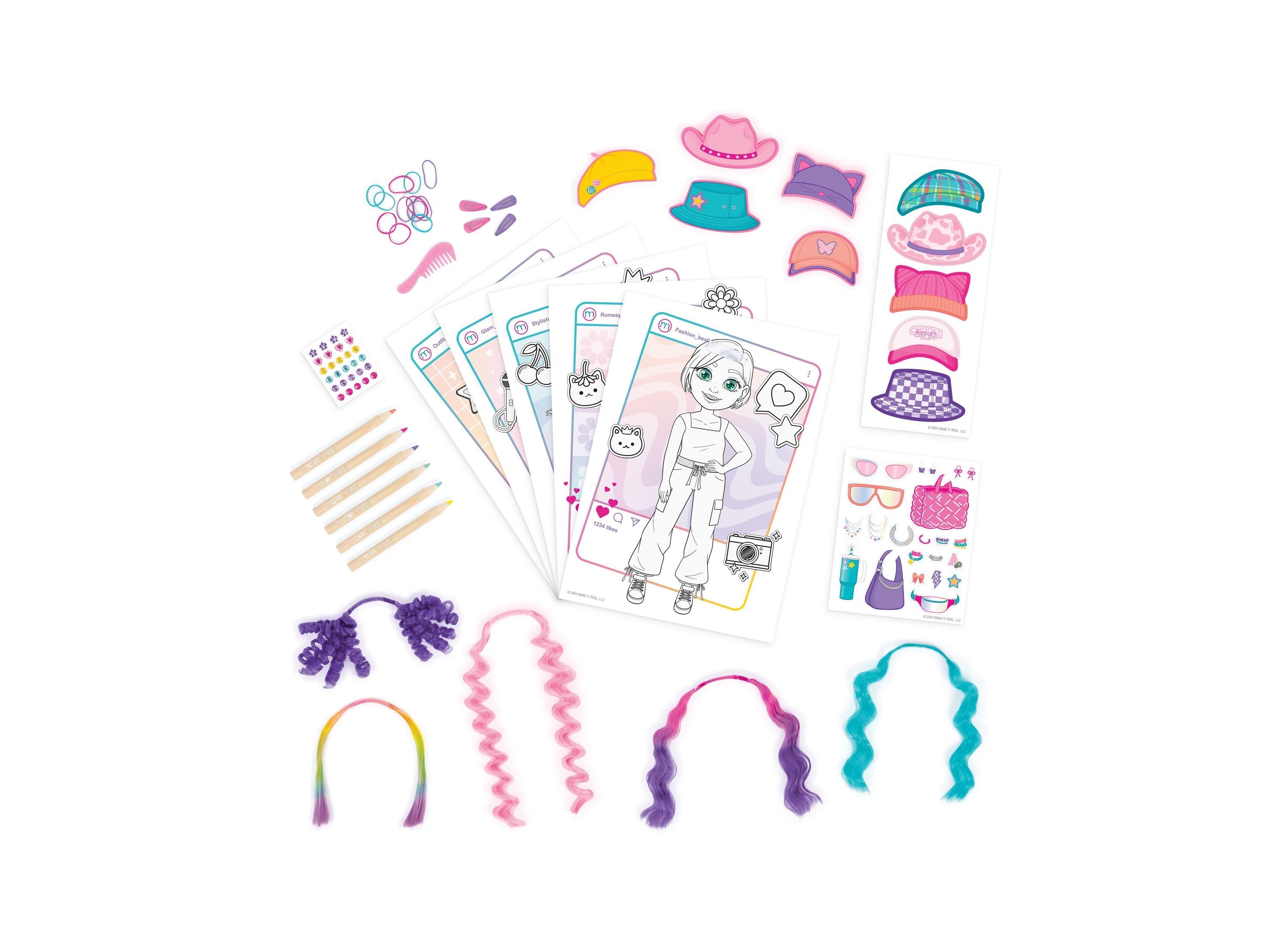 Twirl, style, and sketch your way to fashion designer glory with the Make It Real Salon Style Fashion Studio! This ultimate design kit allows young artists to create their unique style statements by mixing and matching hairdos, hats, clothing, and sparkly accessories. Budding fashionistas can dive into the world of style with five model design boards and an array of colorful art supplies for endless creative fun.