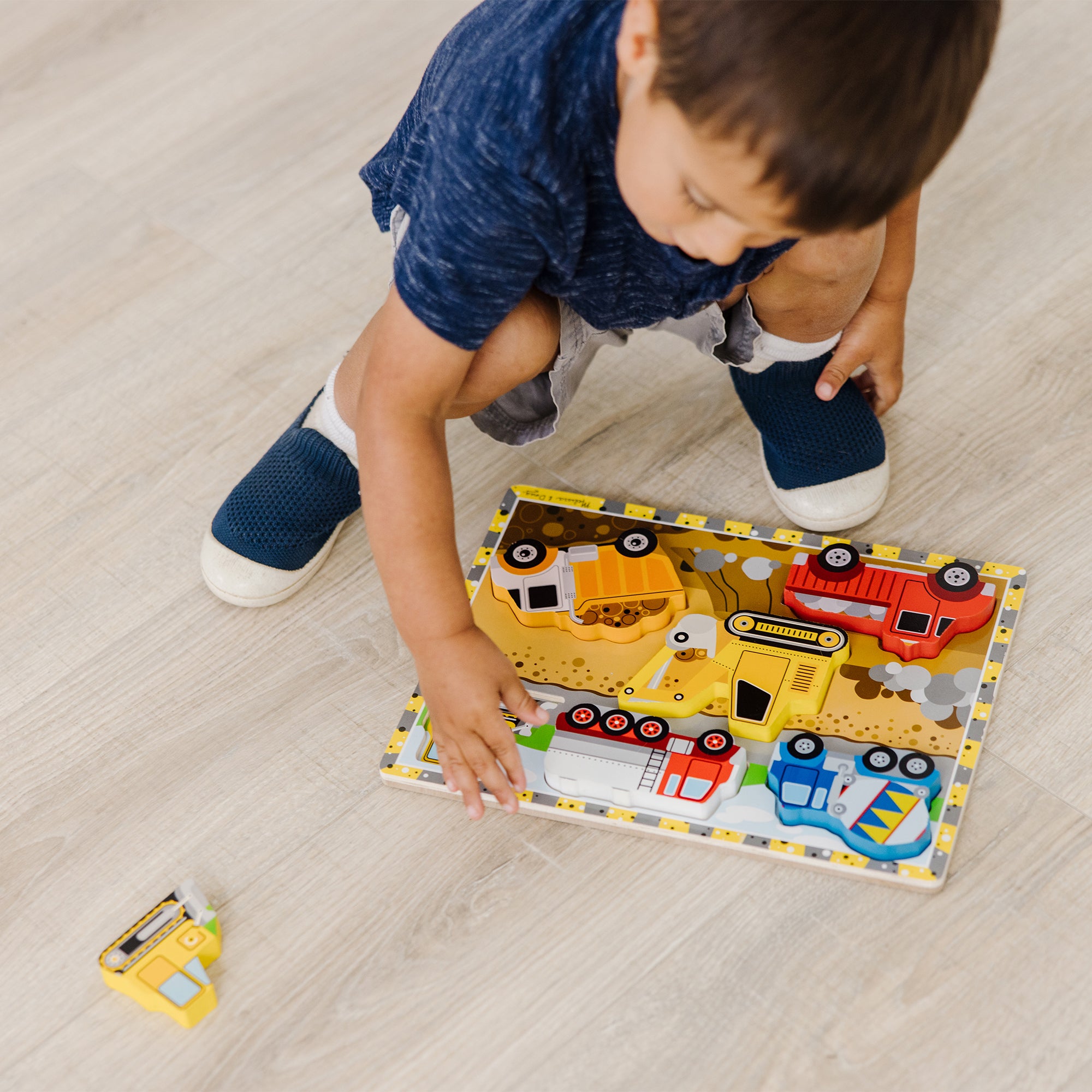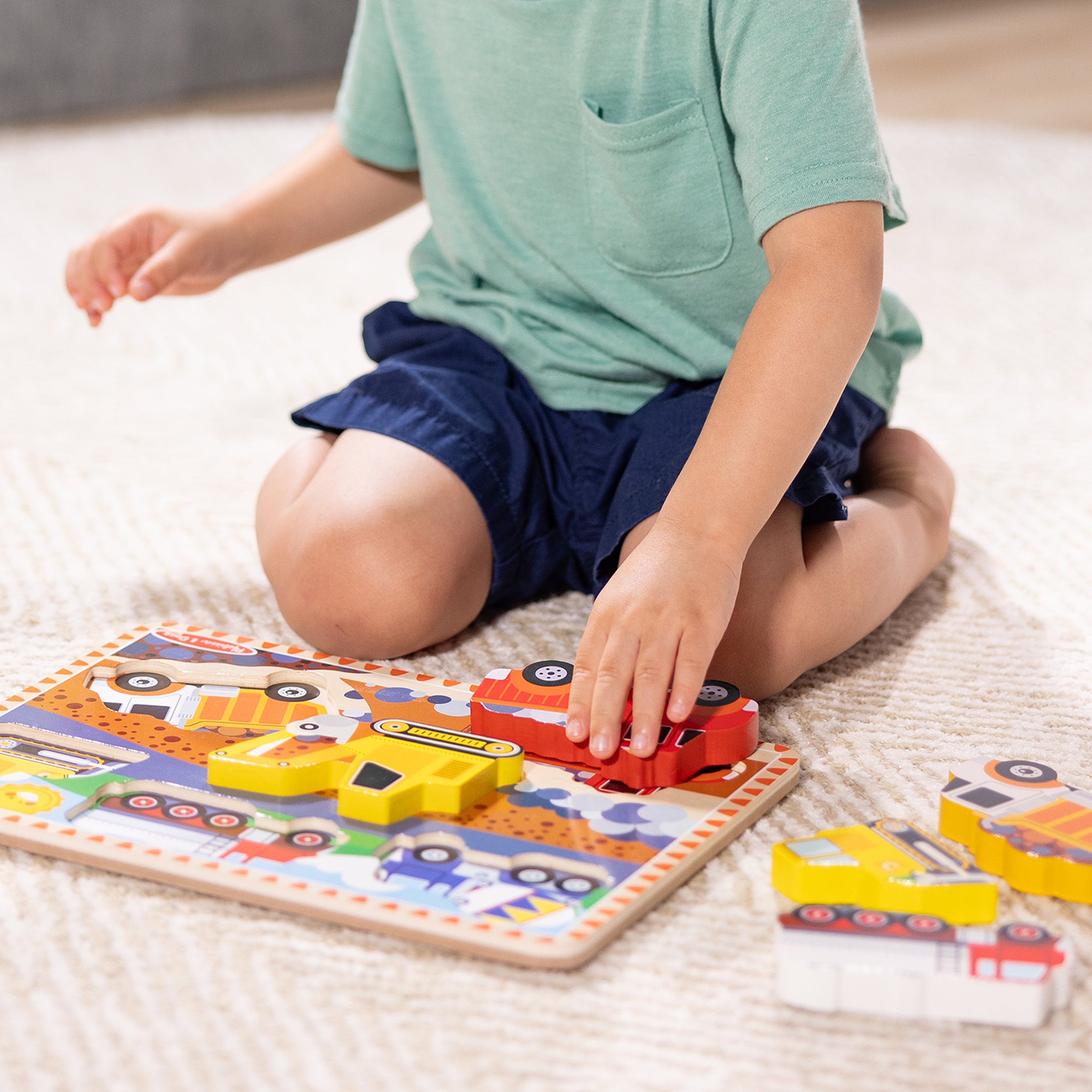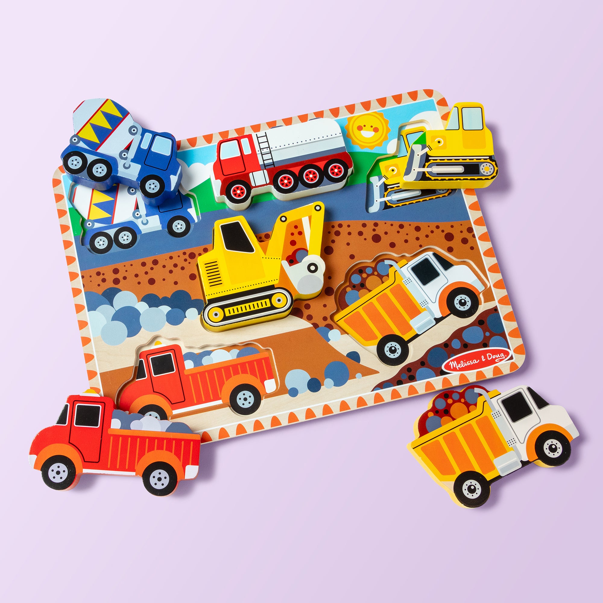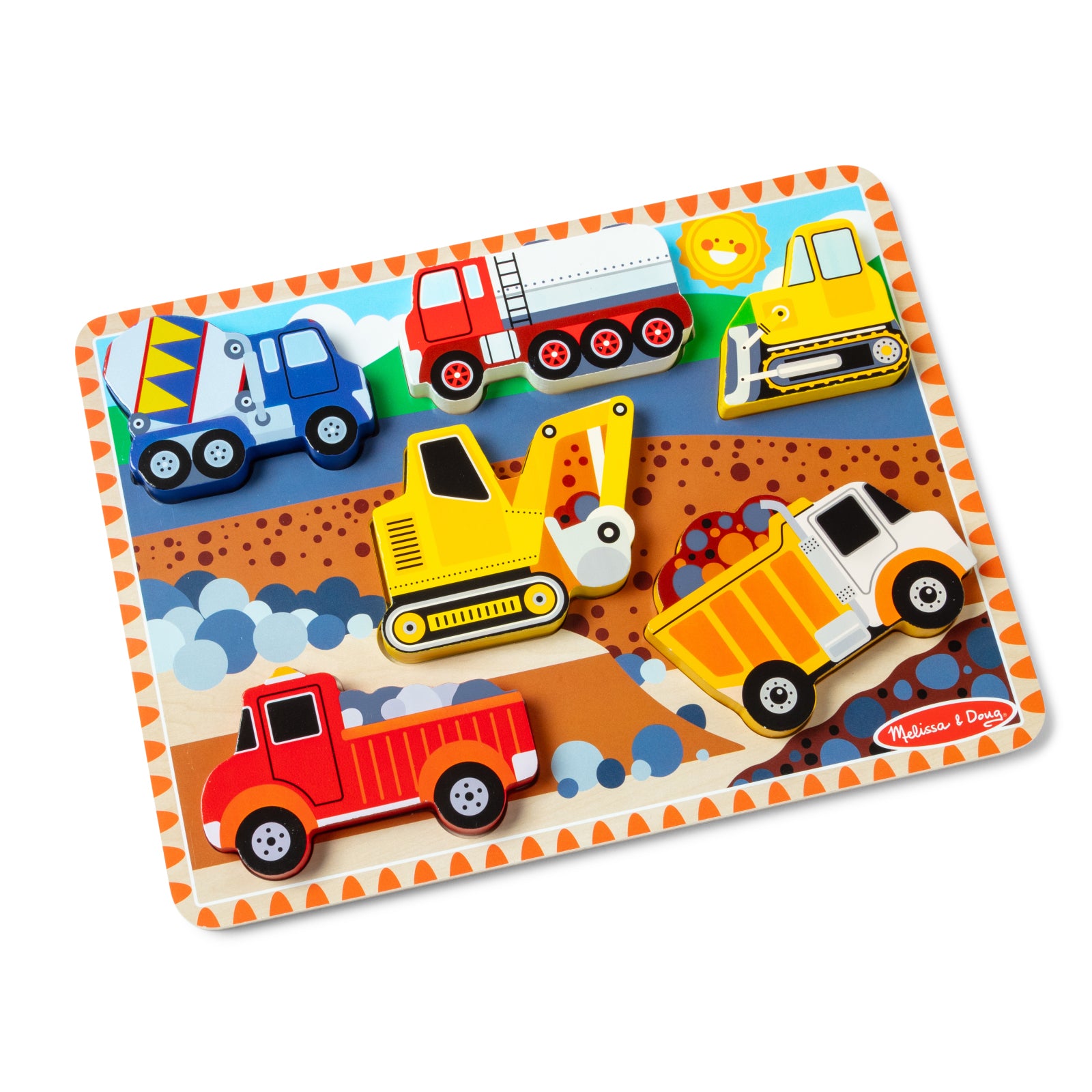 Melissa & Doug Construction Vehicles 6-Piece Wooden Chunky Puzzle