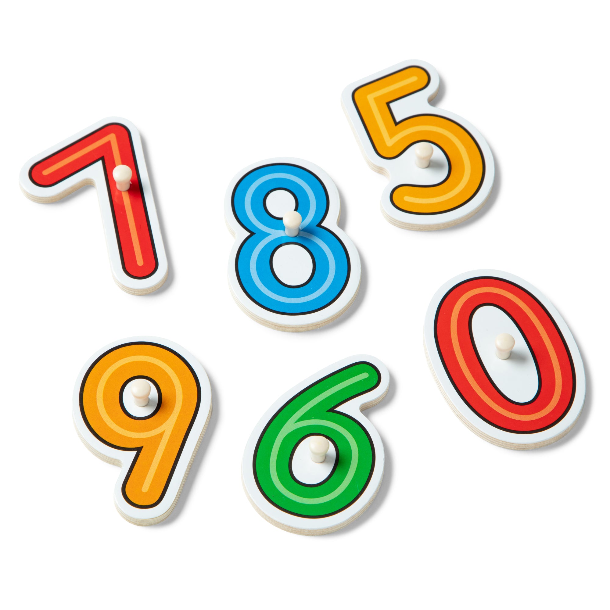 Brightly colored number pieces from zero to nine