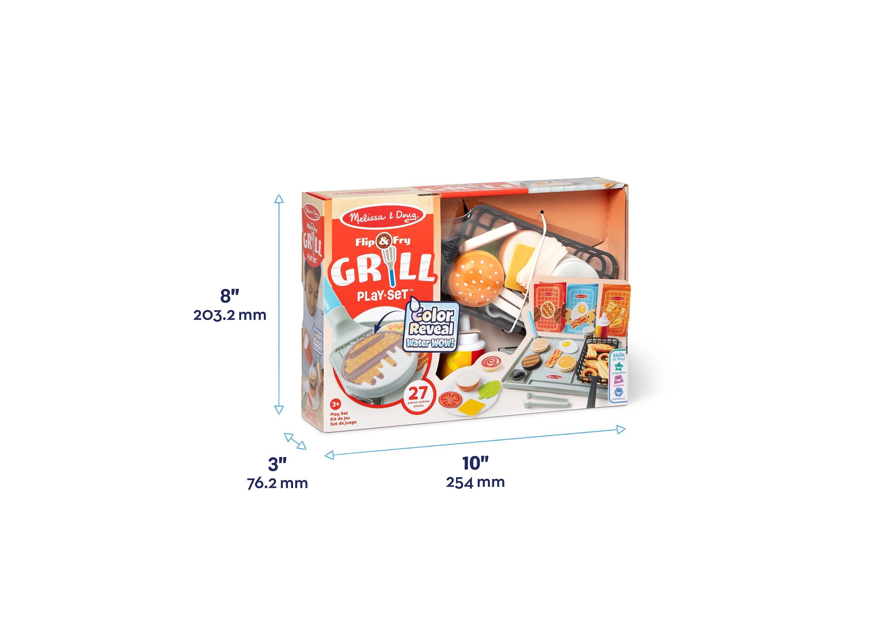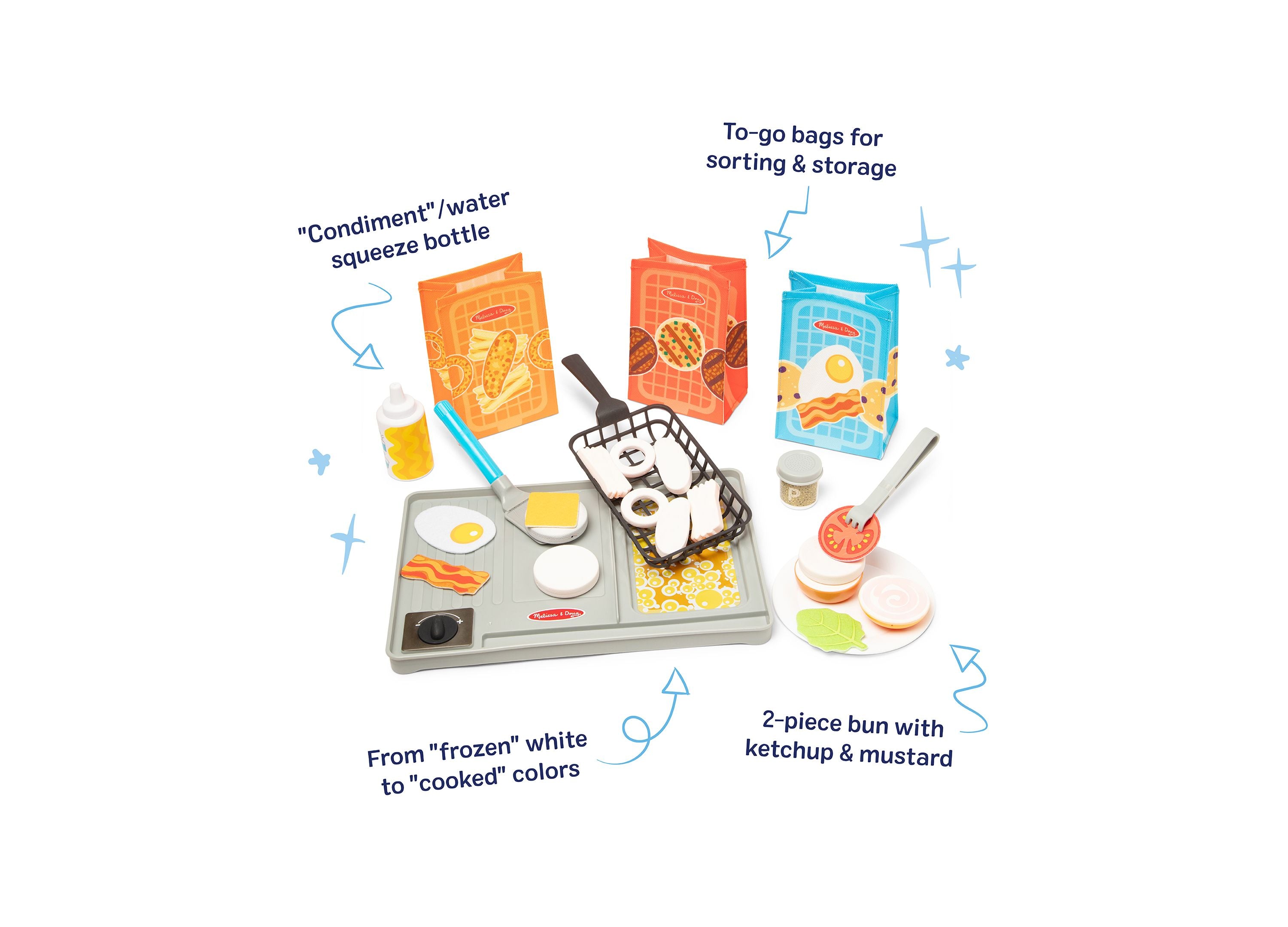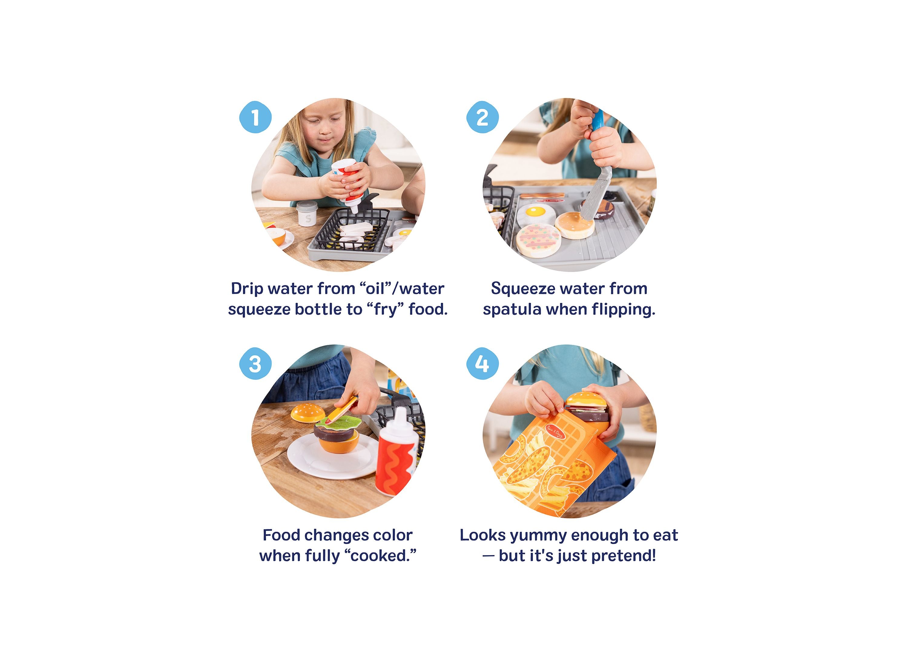 The Melissa & Doug Water Wow Flip & Fry Play Set features:
