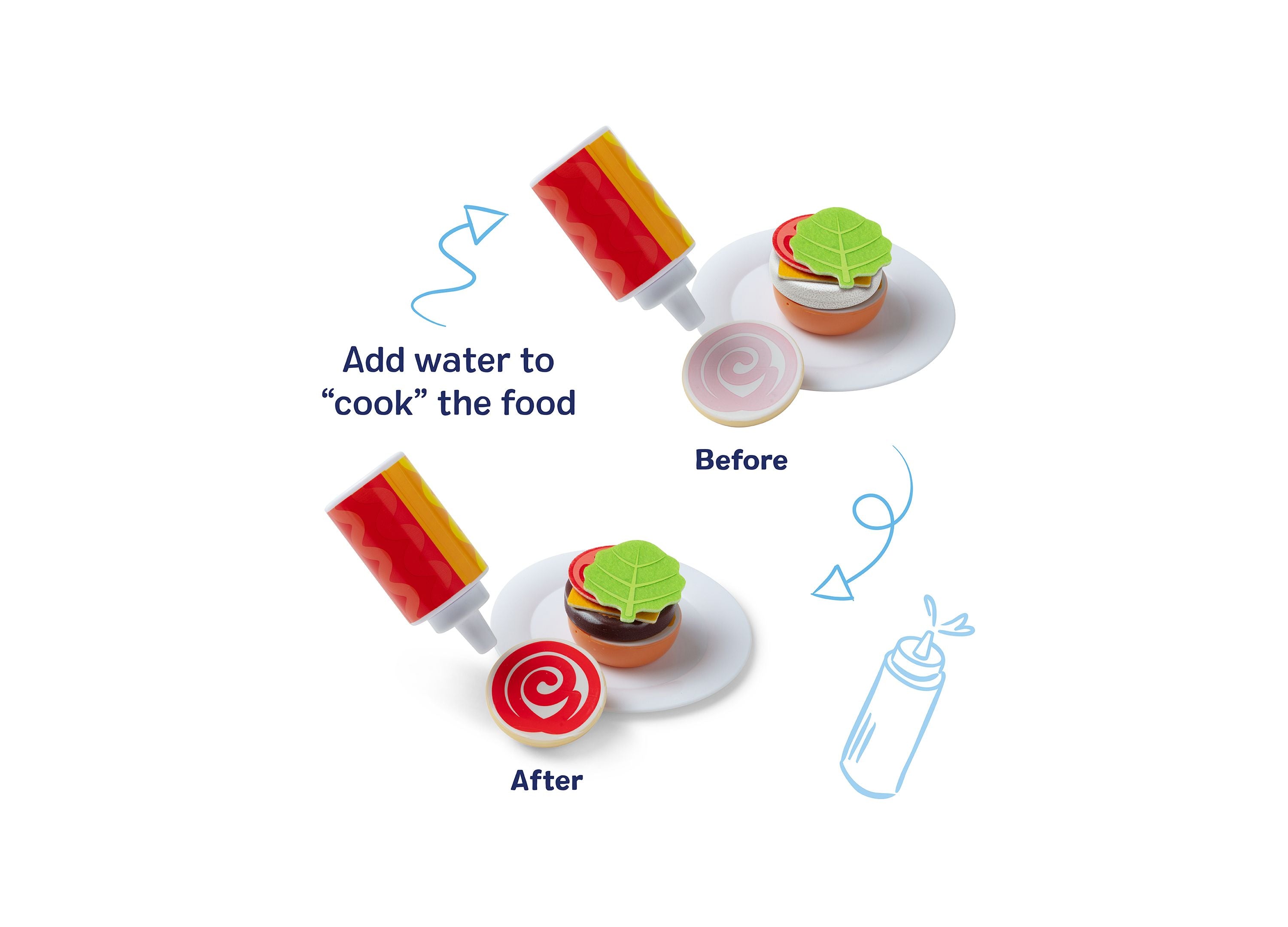 Color-changing play food for realistic cooking action.