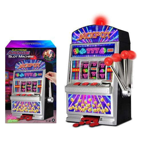 Spin, win, and grin with the Neon Arcade Slot Machine BF! This tabletop toy brings the thrilling ambiance of Vegas right into your home, bedroom, or game room. Crafted meticulously in collaboration with our brand ambassador, this machine not only entertains but elevates your gaming experience with its vibrant sounds and shining lights.