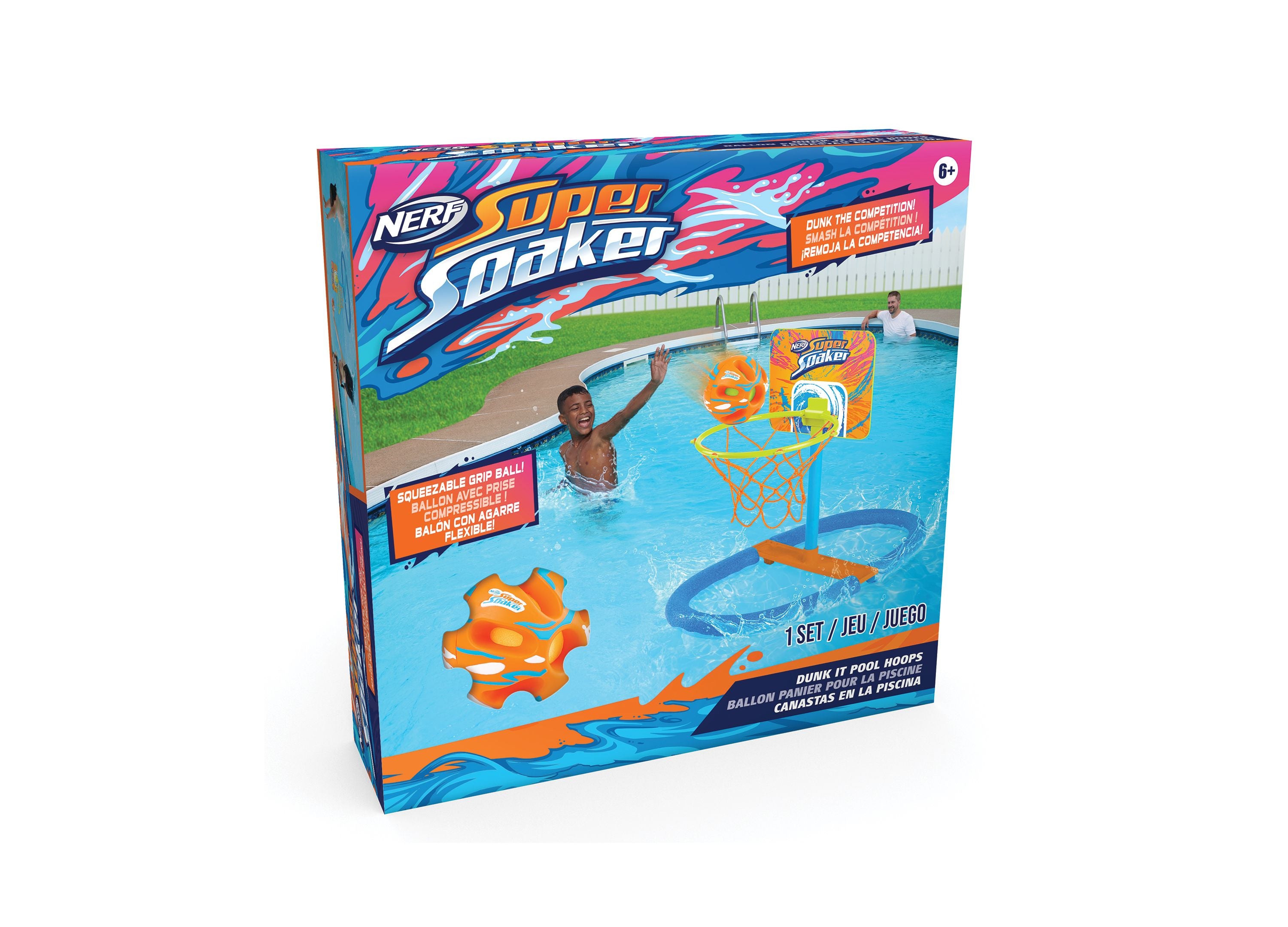 Dive into a splash-tastic adventure of hoops and dunks with the Nerf Super Dunk It Pool Hoops Set! This vibrant and durable pool hoop is perfect for kids and families looking to add a splash of fun to their pool time. With its floating foam base that moves in the water, players can enjoy an added challenge as they aim to score. The unsinkable foam ball means the game can go on without any interruptions, and no pump is needed thanks to its foam core. Whether it’s poolside or in the pool, this hoop is ready for action and folds flat for easy storage when playtime is over.