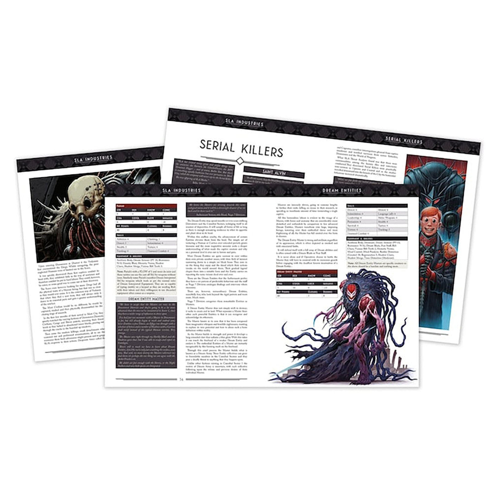 – Insight into the factions fighting against the enemies of SLA Industries